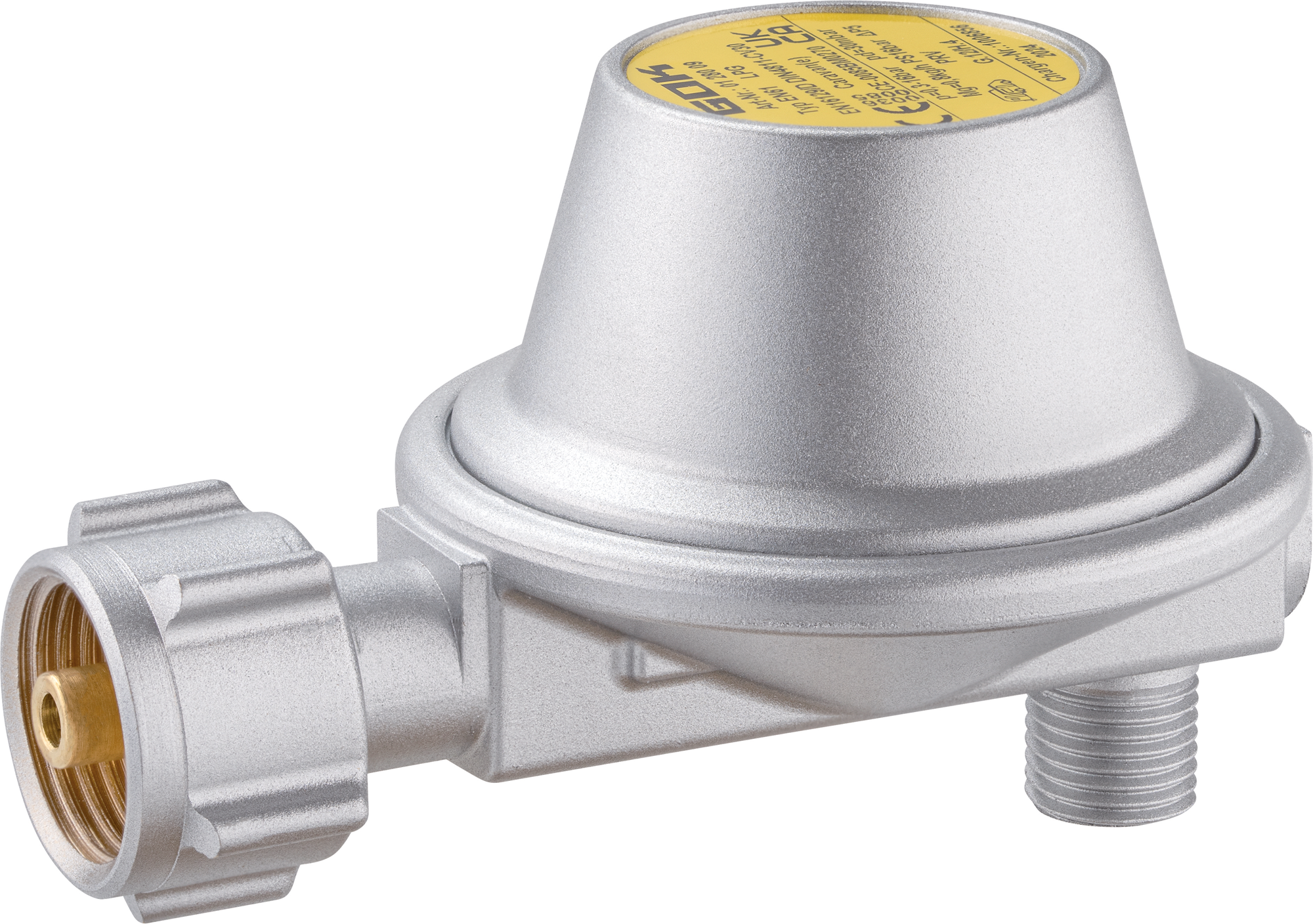 Als spezieller Regler mit Überdrucksicherheitseinrichtung. Diese entspricht den berufsgenossenschaftlichen Anforderungen und ist für den Einsatz auch in gewerblich genutzten Fahrzeugen. Niederdruckregler zum Anschluss an Gasflaschen, zur Druckregelung auf den Nenndruck des Gasgerätes. Bestehend aus: Niederdruckregler mit integrierter Sicherheitseinrichtung gegen Überdruck. Gemäß neuester europäischer Norm DIN EN 16129 für den speziellen Einsatz im Caravan und Reisemobilbereich. Passend für deutsche Gasflaschen. Erhältlich in drei verschiedenen Leistungsstufen (Hinweis: Die Auswahl der Leistungsstufe muss nach Addition aller Geräte-Nenndurchflüsse erfolgen): * Leistungsstufe 1: 0,8 kg/h * Leistungsstufe 2: 1,2 kg/h * Leistungsstufe 3: 1,5 kg/h Außerdem erhältlich mit geradem Abgang oder Abgang mit 90°, sowie mit oder ohne Manometer. Details * Ausgangsdruck: 30 mbar * Maximal zulässiger Druck: PS 16 bar * Eingangsdruckbereich 0,3 – 16 bar. * Mit integrierter Sicherheitseinrichtung gegen Überdruck * Ansprechdruck der Sicherheitseinstellungen bereits bei 100 mbar * Anschluss A: KLF * Anschluss B: G 1/4 LH-KN * Passend für deutsche Gasflaschen Vorteile und Ausstattung * Ausführung mit Manometer zur Dichtheitsprüfung z. B. bei Flaschenwechsel. * Ausführung mit verlängertem Eingangsstutzen, Abgang 90° für VW Busse mit Westfalia Ausbau geeignet. * Metallische Innenteile aus Edelstahl. * Mit Sicherheitsabblaseventil. Hinweise * Die Auswahl der Leistungsstufe muss nach Addition aller Geräte-Nenndurchflüsse erfolgen. * Modell 165540 mit Überdruck-Sicherheitseinrichtung S2SR (ÜDS) * Die übrigen Varianten mit Sicherheitsabblaseventil PRV Art Gasregler, Gasschläuche: Regler, Ausführung: mit 90° Abgang, Farbe: orange, Gasdruck: 30 mbar, Nenndurchfluss: 0,8 kg/h