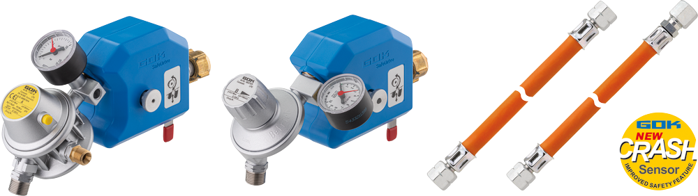 Sicherheits-Gasdruck-Umschaltautomatik für Wohnmobile Sicherheits-Gasdruck-Umschaltautomatik zum Betrieb von Zweiflaschenanlagen in Wohnmobilen und Wohnwagen während der Fahrt, zum direkten Anschluss an die Gasflaschen, bestehend aus Zentral- und Umschaltregler mit mechanischem Crash-Sensor mit neuer Pendellösung und Manometer, Schlauchleitungen und Reglerhalterungen. Details: * Gasversorgung während der Fahrt durch integrierten mechanischen Crash-Sensor mit neuer Pendellösung, der bei einem Unfall den Gasdurchgang absperrt. Die Vorteile dadurch: * schnellere und einfachere Inbetriebnahme sowie Reset nach Ansprechen * präzisere Funktionsweise und daher weniger Störungen durch falsches Ansprechverhalten * Inbetriebnahme problemlos möglich, auch wenn das Freizeitfahrzeug in Schräglage steht * einfache Nachrüstung, da keine Wandmontage der Regler notwendig ist; die Montage erfolgt direkt an die Gasflasche * geringer Platzbedarf für die Montage im Gasflaschenkasten * Gasflasche kann auch während der Fahrt permanent geöffnet bleiben * höhere Sicherheit, da im Falle eines Unfalls die Gaszufuhr direkt an der Gasflasche unterbrochen wird * automatische Umschaltung auf die Gasflasche der Reserveseite, sobald die Gasflasche der Betriebsseite leer ist * ein Flaschenwechsel ist ohne Betriebsunterbrechung möglich * mit Sicherheitsabblaseventil PRV * Gasrücktrittsicherung: ein Durchschlagen des Gasstroms beim Flaschenwechsel wird verhindert * Mitteldruck-Schlauch (Gummi mit Textileinlage; kältebeständig bis -30 °C; Schlauchabmessung 6,3 x 3,5 mm) G 3/8 LH-ÜM x G 3/8 LH-ÜM x 450 mm zur Verbindung der beiden Regler * Mitteldruck-Schlauch (Gummi mit Textileinlage; kältebeständig bis -30 °C; Schlauchabmessung 6,3 x 3,5 mm) G 1/4 LH-ÜM x RVS 10 x 450 mm zum Anschluss der Anlage an die Versorgungsleitung des Fahrzeugs * geeignet für den Anschluss der Fernanzeige Caramatic SafeControl * Ausgangsanschluss RVS 10 / 8 ist serienmäßig mit einem Übergangsstück zum Anschluss an 8 mm Rohrleitungen ausgerüstet * Halterungen zur sicheren Verwahrung des Reglers an der Wand, z. B. bei Wechsel der Gasflasche Technische Daten: * Maximal zulässiger Druck: PS 16 bar * Anschlüsse: Ausgang: Zentralregler: G 1/4 LH-KN * Umschaltregler: G 3/8 LH-KN * Ausgangsdruck: Zentralregler: 30 bzw. 50 mbar * Umschaltregler: 150 mbar Konformität: * Einzelarmaturen mit DIN-DVGW- bzw. DVGW-Baumusterprüfzertifikat o. EU-Bau- musterprüfbescheinigung DGR Lieferumfang: * 1 x Gasdruckregelanlage bestehend aus: Zentral- und Umschaltregler, jeweils mit Crash-Sensor * 2 x Schlauchleitungen, jeweils 45 cm Anschluss AAnschluss BAusgangsdruckLeistungBestimmungslandKLFRVS 10 / 830 mbar1,5 kg/hDE / AT / PLBrit.POLRVS 10 / 830 mbar1,5 kg/hGB PropanEU-ShellRVS 10 / 830 mbar1,5 kg/hGB ButanItal.ARVS 10 / 830 mbar1,5 kg/hIT / GR / CYPOL-WFRVS 10 / 830 mbar1,5 kg/hSEShell-FRVS 10 / 830 mbar1,5 kg/hCH / BEKLFRVS 10 / 850 mbar1,5 kg/hDE / AT / PL Fragen & Antworten: Ist die Nachrüstung und Montage wirklich so einfach? Du schraubst lediglich den Druckregler samt integriertem Crash-Sensor an die Gasflasche und verbindest diese Einheit via Schlauchleitung mit der Rohrleitung des Fahrzeugs. Das war´s! Für die Zweiflaschenanlage SafeDrive Plus gilt im Prinzip dasselbe. Du musst lediglich zwei Druckregler samt Crash-Sensor anschrauben und diese per Gasschlauch miteinander verbinden. Ist der Wechsel von jedem Hersteller hin zu GOK möglich? Es gibt dort keinerlei Einschränkungen. Du kannst das alte System demontieren und die Caramatic SafeDrive nachrüsten oder neu einbauen. Denn es bedarf lediglich einer oder zwei Gasflaschen sowie den Zugang zur Rohrleitung des Fahrzeugs. Warum sind Gasfilter oder Schlauch…