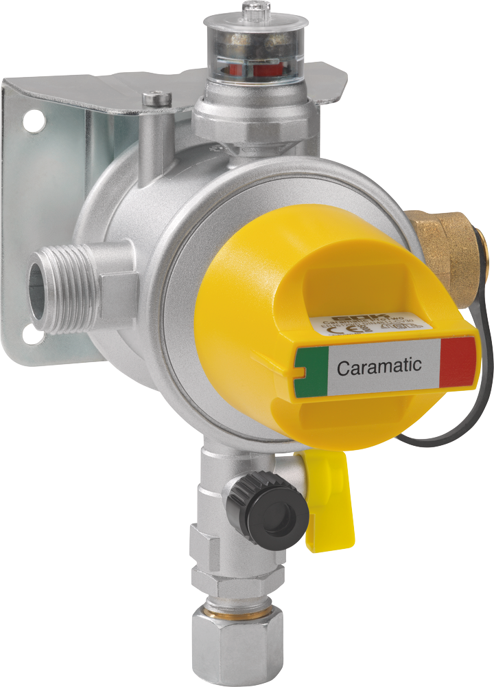 Caramatic ProTwo PS 16 bar Automatisches Umschaltventil mit integriertem Niederdruckregler für die Zweiflaschenanlage, zum Anschluss an Gasflaschen mittels Hochdruck-Schlauchleitung, zur Druckregelung auf den Nenndruck des Gasgerätes bestehend aus: Automatischem Umschaltventil, Niederdruckregler mit Sicherheitsabblaseventil PRV, Bedienknopf, Betriebs- und Reserveanzeige, Gasrücktrittsicherung, Prüfeinrichtung und Wandhalterung Vorteile und Ausstattung * automatische Umschaltung auf die Gasflasche der Reserveseite, sobald die Gasflasche der Betriebsseite leer ist * ein Flaschenwechsel ist ohne Betriebsunterbrechung möglich * Gasrücktrittsicherung: ein Durchschlagen des Gasstroms beim Flaschenwechsel wird verhindert * gleichmäßige Gasversorgung durch optimale Ausnutzung des Gasflascheninhaltes * Anzeige, aus welcher Gasflasche entnommen wird * europaweite Verwendung durch den Einsatz von länderspezifischen Hochdruck-Schlauchleitungen (nicht im Lieferumfang enthalten) * Prüfeinrichtung zur Dichtheitsprüfung der Flüssiggasanlage ohne Abbau der Druckregeleinrichtung * Ausführung mit Ausgangsanschluss RVS 10 / 8 ist serienmäßig mit einem Übergangsstück zum Anschluss an 8 mm Rohrleitungen ausgerüstet * 2 x AG M20 x 1,5 x RVS Konformität * EG-Baumusterprüfung nach GAR Hinweis * Für Altfahrzeuge uneingeschränkt verwendbar! * Zum Schutz der Flüssiggasanlage im Fahrzeug vor öligen Aerosolen und Abdampfrückständen wird der Einsatz eines Caramatic ConnectClean empfohlen! Art Gasregler, Gasschläuche: Umschaltanlagen, Nenndurchfluss: 1,5 kg/h, Ausführung: 30 mbar