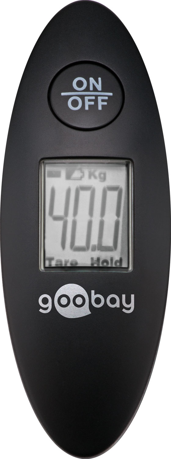 Goobay Digitale Kofferwaage Gepäckwaage mit heller LCD-Anzeige Zur präzisen Gewichtsermittlung bei Reisegepäck bis 40 kg: * Praktische Kofferwaage für ein Gewicht bis 40kg. Durch die beleuchtete LCD Anzeige lassen sich auch Messungen bei suboptimalen Lichtverhältnissen durchführen. Die Gewichtanzeige kann wahlweise in Kilogramm (kg) oder Pfund (lbs) erfolgen * Data-Lock-Funktion: Die Waage enthält einen Kurzzeitspeicher mit Signalton durch welchen es ermöglicht wird, den Messwert auf dem Bildschirm bequem nach dem Messvorgang abzulesen * Zeichnet sich durch eine einfach Befestigung am Gepäckstück aus und besitzt ein modernes Design. Durch ihre ergonomische Form liegt diese Waage hervorragend in der Hand * Das kompakte Design ermöglicht ein kinderleichtes platzsparendes Verstauen und macht diese Waage zum idealen Reisezubehör Art Rund ums Gas: Inhaltsmesser, Farbe: schwarz
