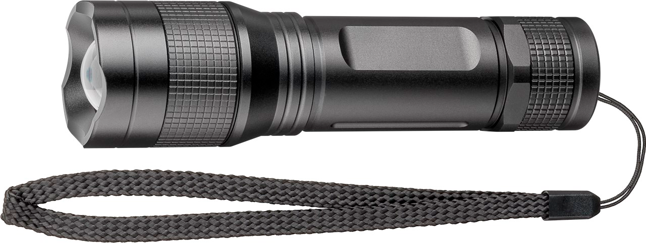 LED-Taschenlampe High Bright 300 * ideal für Freizeit, Sport, Camping, Angeln, Jagd und Pannenhilfe * sehr helle 5 W Cree XPG2 Hochleistungs-LED * 300 lm mit einer Leuchtweite von bis zu 150 m * spritzwassergeschützt nach IPX4 * 3 Leuchtmodi: 100% Licht, 20% Licht und SOS; auch durch leichtes Knopfdrücken einstellbar * mit Zoom-Funktion – Leuchtenkopf mit Fokusring zur stufenlosen Einstellung des Lichtkegels * korrosionsbeständiges Aluminium-Gehäuse und praktische Handschlaufe * batteriebetrieben (3x AAA, nicht im Lieferumfang enthalten) Technische Daten Batterie (nicht im Lieferumfang enthalten) * Spannung: 1.5 V * Anzahl Zellen: 3 Stück Leistung * Lichtquelle: Leuchtdiode (LED) * Lichtfarbe: kalt-weiß * Leuchtmittel-Typ: Cree LED * Max. Leistungsaufnahme: 5 W * entspricht Glühlampe: 30 W * Dimmbarkeit: dimmbar * Nennlichtstrom: 300 lm * min. Leuchtdauer: 3 h * max. Leuchtdauer: 7 h * max. Leuchtweite: 150 m * Lichtausbeute: 60 lm/W * Betriebsspannung: 4.5 V (DC) Allgemein * Verpackungstyp: Retail Blister * Verbrauchseinheit: 1 Stk. im Blister * Schutzart: IPX4 * Nennlebensdauer: 50000 Std. * Anzahl Schaltzyklen: 50000 Stk. * Anwendungen: Outdoor/Camping * Besonderheit: Dimmfunktion * Betriebstemperatur: ab -20 °C bis 60 °C Lieferumfang Aufbewahrung: Handschlaufe Art Leuchten elektrisch: Taschenlampe, Farbe: schwarz, Gewicht: 119 g, Durchmesser: 34 mm, Leuchtdauer: 7 Stunden, Leuchtweite: 150 Meter, Material Gehäuse: Aluminium, PMMA