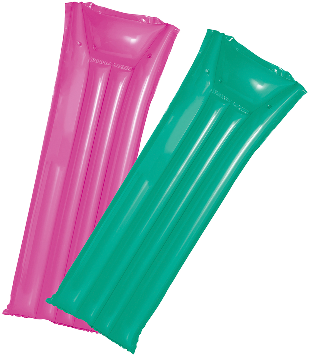 Luftmatratze 177 × 60 cm – bequem, stabil und farbenfroh Diese Luftmatratze mit zwei getrennten Luftkammern bietet sicheren Auftrieb und hohen Liegekomfort. Sie ist in zwei Farbkombinationen sortiert – pink oder türkis – die beim Versand zufällig ausgewählt wird. Die Luftmatratze eignet sich ideal zum Entspannen auf dem Wasser oder am Strand. Details: * Zwei separate Luftkammern für Stabilität * Farben: 2-fach sortiert (pink oder türkis) * Ideal für Pool, See oder Strand * Leicht aufzublasen und zu transportieren Technische Daten: * Maße: ca. 177 × 60 cm * Material: Kunststoff (weich und wasserfest) * Farbe: pink oder türkis (zufällig sortiert) Lieferumfang: * 1 Luftmatratze (Farbe zufällig sortiert) Farbe: pink / türkis, Produktart Badespaß: Luftmatratze, Maße (LxB): 177 x 60 cm