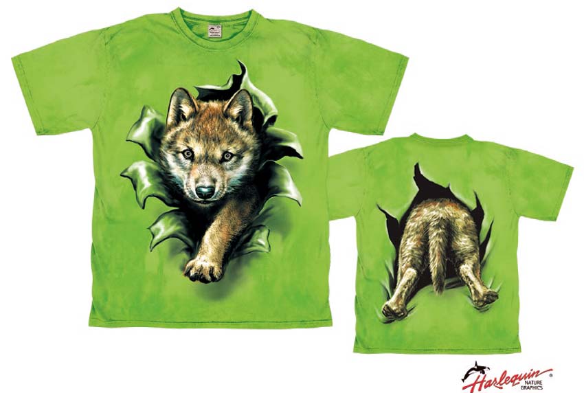 Harlequin Wolf Pup Rip Through Kinder T-Shirt grün 128 – Kinder T-Shirts & -hemden