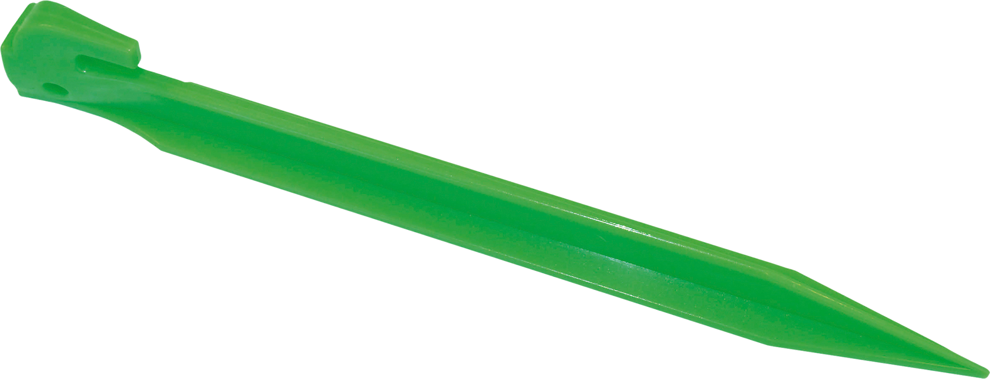 Leichter Kunststoffhering – stabil, schlagfest und rostet nicht. In Signalfarbe und speziell geeignet für gemischte Böden. 6 Stück verpackt im Set. Art Heringe: Schlaghering, Farbe: grün, Gewicht: 22 g, Länge: 20 cm, Material: Acrylnitril-Butadien-Styrol (ABS)