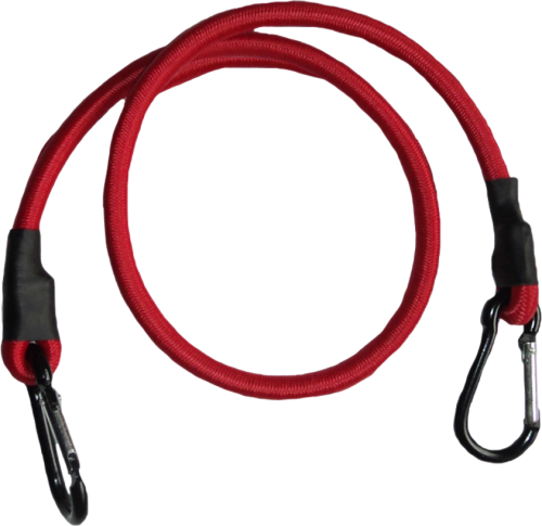 Gepäckspanner.-Karabiner 150cm Textilumwirkter Gummi-Expander mit Metall-Karabiner. Durchmesser: 100 mm Länge: 150 cm Farbe: Rot