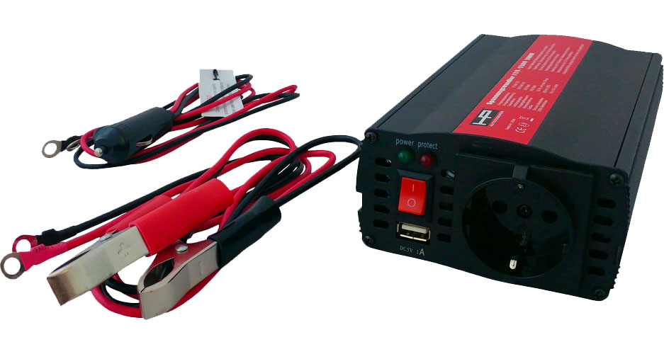 HP Spannungswandler 12 V auf 230 V mit Batterieklemmen und 12 V – Stecker 300 – 600 W – Wechselrichter & Spannungswandler von HP Autozubehör
