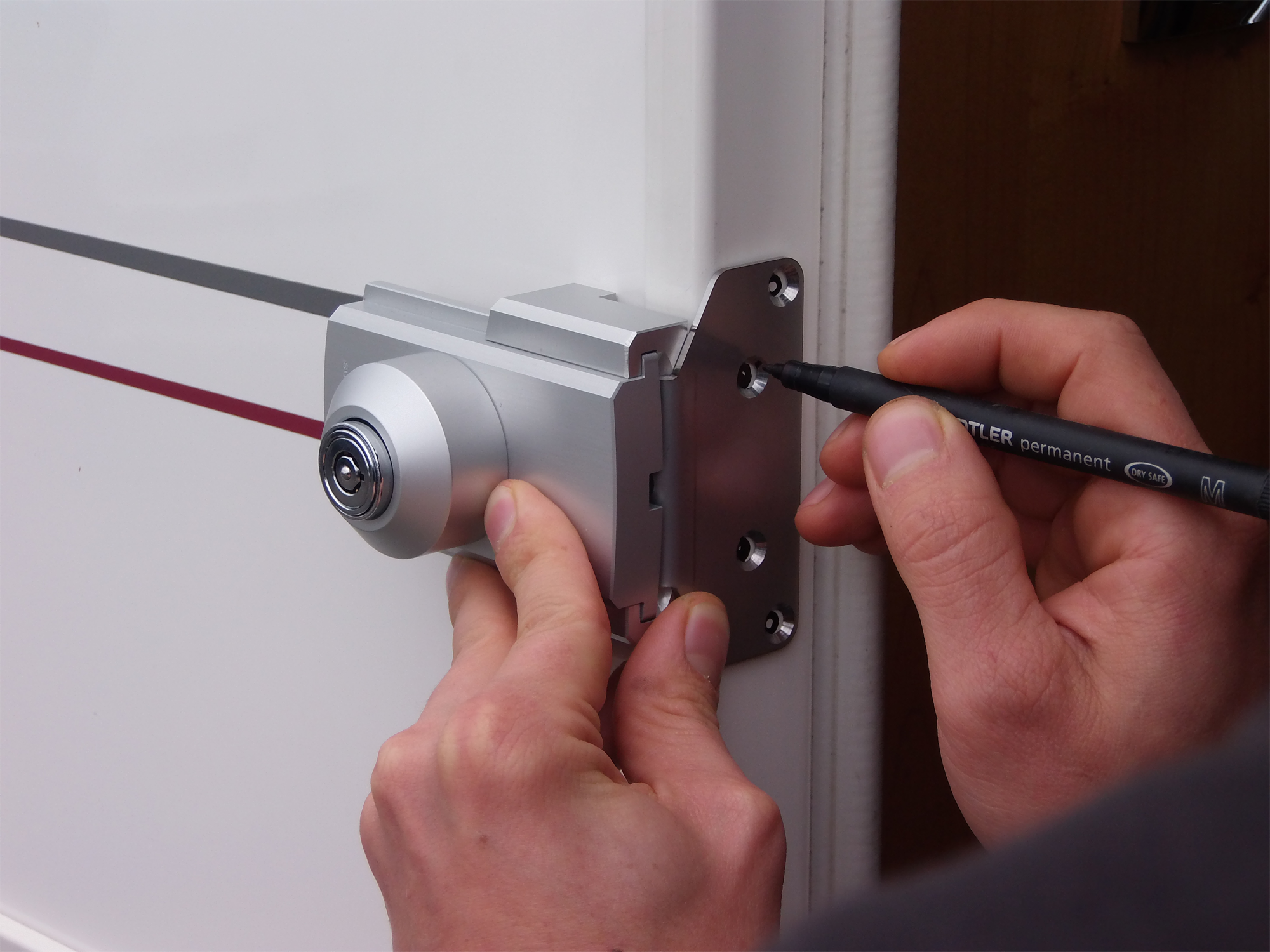 Schloss für Wohnmobile vom Typ Profil, Integral. Details * Schieber + Basis Riegel aus Aluminium 2017 * Schrauben aus rostfreiem Stahl * Wird mit 4 Schrauben an der „Scheibe“ des Türrahmens befestigt! * Schloss mit Zylinder aus hochfestem Stahl ausgestattet. * Anbohrsicheres Zentrum, das zusätzlichen Widerstand bietet. * Radialer Stiftmechanismus * Radialer 7-Stift-Mechanismus, der 500.000 Kombinationen ermöglicht * Montage mit Schrauben (im Lieferumfang enthalten) * Wird an der Kante der Tür montiert. * Das Schloss lässt sich sowohl an nach links als auch an nach rechts öffnenden Türen anbringen (reversibel). * Schließen Sie Ihre Tür, indem Sie das Schloss nach links oder rechts schieben. Art Sicherheitszubehör: sonstiges Sicherheitszubehör, Farbe: hellgrau, Material: Aluminium, Ausführung: 3 Stück, Gewicht: 2,9 kg