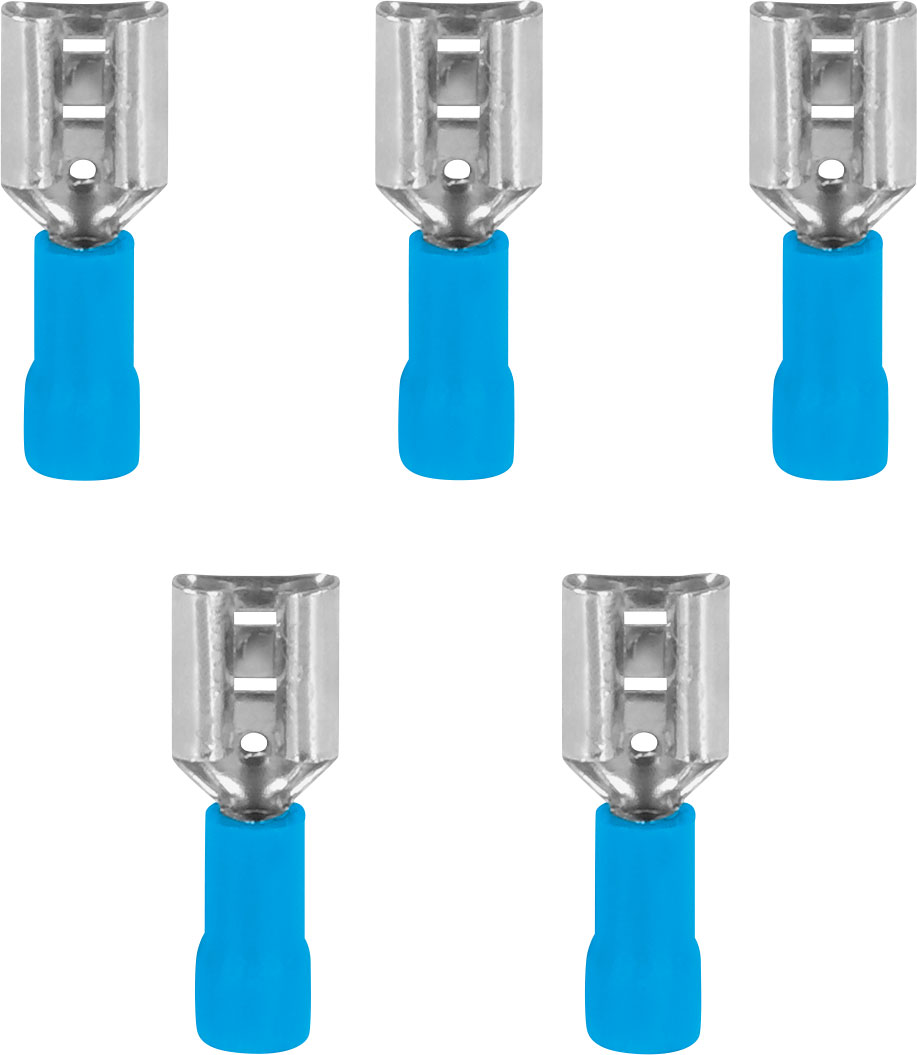 5 Stck.; teilisoliert, blau, für Kabel von 1 – 2,5 mm² Art Kabel, Kupplung, Schalter und Stecker: Stecker, Farbe: blau