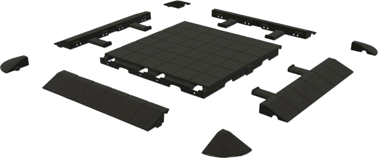 Hält man sich viel in seinem Vorzelt auf, so ist es angenehm, wenn der Boden eben ist und der Teppich glatt liegt. IsabellaFloor bietet zahlreiche Vorteile. Er ist ohne Werkzeuge leicht auszulegen, da die Elemente mit Verschlusszapfen und wie ein Stecksystem ineinander gesteckt werden. Er ist leicht aufzubewahren und hat eine hohe Lebensdauer. IsabellaFloor hat außerdem den Vorzug, dass man Schrägen und Eckschrägen zukaufen kann. Das ergibt nicht nur ein ansprechendes Finish, sondern ist auch praktisch z. B. für Rollstuhlfahrer und Familien mit Kinderwagen. Details * Stabile Bodenplatten * leicht zu verlegen * Farbe: schwarz * Größe: 50 x 50 cm (LxB) * Gewicht: 1,46 kg Hinweis Wählbar in diesem Artikel sind: * Mittelteil der Bodenplatte * Seitenteil der Bodenplatte * Frontteil der Bodenplatte * Eckteil der Bodenplatte Die Anzahl der einzelnen Stücke können sie sich individuell auswählen. Art Zeltteppich, Boden, Plane: Bodenplane/Zeltunterlage, Material: recyceltes PVC (Polyvinylchlorid), Ausführung: Bodenplatte Mittelteil, Farbe: schwarz, Maße (LxB): 50 x 50 cm