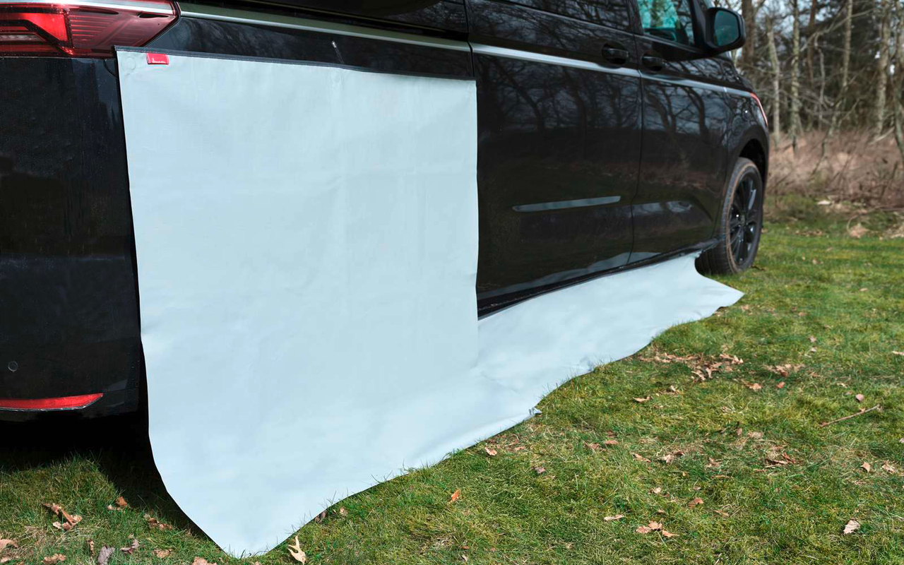 Windblende & Radkastenabdeckung Van Klein – Schutz vor Zugluft und Kälte Mit dieser Windblende verhinderst du lästige Zugluft und Kälte unter deinem Van oder Bus. Sie dichtet effektiv zwischen den Rädern ab und sorgt so für mehr Komfort im Wohnraum. Die zweiteilige Blende besteht aus einer durchgehenden Abdeckung von Vorder- zu Hinterrad sowie einem erhöhten Teil für den Radkasten. Das strapazierfähige Polyvinylchlorid (PVC) schützt zuverlässig vor Wind und Wetter, während die Montage dank Magneten schnell und schraubenfrei gelingt. Details: * Magnete für einfache Montage * Strapazierfähiges Polyvinylchlorid (PVC) schützt vor Wind und Wetter * Passend für VW T5/T6 (inkl. California), Mercedes Marco Polo, Ford Nugget, Ford Nugget Plus, Renault Space Nomad, Nissan Primastar Seaside * Zweiteilig: durchgehende Blende und Radkastenabdeckung Technische Daten: * Material: Polyvinylchlorid (PVC) 350 g/m² * Farbe: Grey * Breite: 220 cm * Tiefe: 45 cm * Höhe: 115 cm Lieferumfang: * 1x Windblende & Radkastenabdeckung Van Klein Farbe: grau, Breite: 220 cm, Höhe: 115 cm