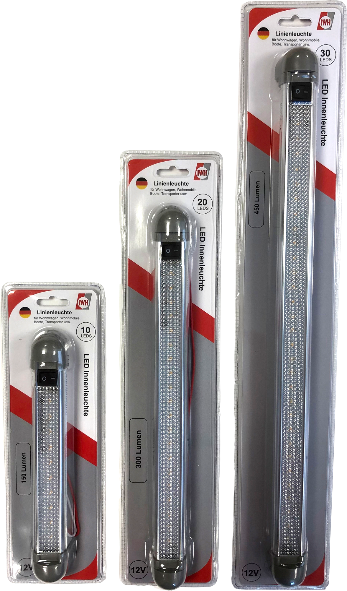 Linienleuchte mit 10 LEDs / 12V-1,6W * 180° schwenkbar * Farbtemperatur: 3000K * Lichtstrom: 150 LM * Abmessungen: 225 × 35 × 33 mm * Mit Ein- / Aus-Schalter * Nur für den Innenbereich Linienleuchte mit 20 LEDs / 12V-3,2W * 180° schwenkbar * Farbtemperatur: 3000K * Lichtstrom: 300 LM * Abmessungen: 340 × 35 × 33 mm * Mit Ein- / Aus-Schalter * Nur für den Innenbereich Linienleuchte mit 30-LEDs / 12V-4,8W * 180° schwenkbar * Farbtemperatur: 3000K * Lichtstrom: 450 LM * Abmessungen: 470 × 35 × 33 mm * Mit Ein- / Aus-Schalter * Nur für den Innenbereich Ein/Aus Schalter: Ja, EPREL-Nummer: 1295667, Maße (LxBxH): 225 x 35 x 33 mm, Leistung (W): 1,6 W, Lichtfarbe: 3000 K, Lichtstrom: 150 lm