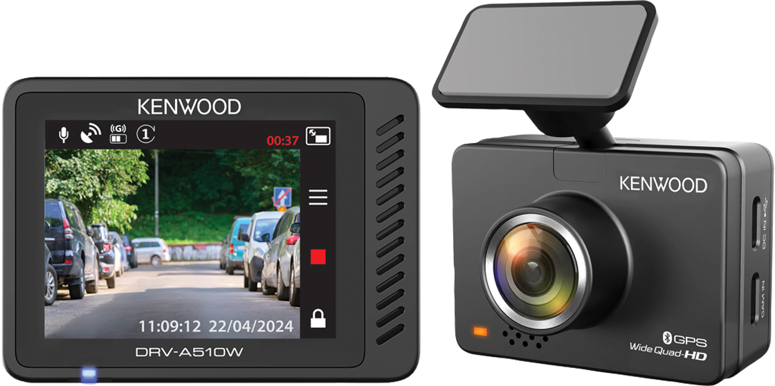 Autarke Full HD Dashcam DRV-A510W von Kenwood Sorge mit der kompakten und leistungsstarken DRV-A510W Dashcam von Kenwood für mehr Sicherheit unterwegs. Mit ihrem 3,7-Megapixel-Sensor, 136° Weitwinkelobjektiv und HDR-Aufnahme liefert sie gestochen scharfe Videos – selbst bei schlechten Lichtverhältnissen. Dank der Wifi-Integration und der Smartphone-App kannst Du Videos bequem ansehen und Einstellungen direkt vornehmen. Der G-Sensor und Bewegungssensor speichern Unfallvideos automatisch, während das integrierte GPS Deine Fahrten präzise dokumentiert. Die einfache Montage und die unauffällige Bauweise machen die Dashcam zum perfekten Begleiter. Details * Autarke Dashcam mit 2-Zoll-Farbdisplay * 3,7 Megapixel-Sensor, 136° Weitwinkelobjektiv * HDR-Aufnahme für optimale Bildqualität * Wifi-Integration und App-Anbindung für einfache Bedienung * Automatische Speicherung von Unfallvideos durch G-Sensor * GPS-Funktion und OTA-Softwareupdates * Mikrofon und microSD-Kartenslot integriert Technische Daten * Maße: 58,5 x 42,8 x 24,4 mm (Breite x Höhe x Tiefe) * Gewicht: 76 g * Auflösung: Wide Quad-HD (2560 x 1440) * Sensor: 1/2.8 Color CMOS * Farbe: anthrazit Lieferumfang * Dashcam DRV-A510W * KFZ-Adapter * Scheibenhalterung App-Steuerung: Ja, Art Navigationssysteme: Dashcam, Bluetooth: Ja, Farbe: anthrazit, Gewicht: 0,32 kg, Bluetooth Datenzugriff: Ja, Displaydiagonale: 2 „“, Maße Monitor (BxHxT): 58,5 x 42,8 x 24,4 cm