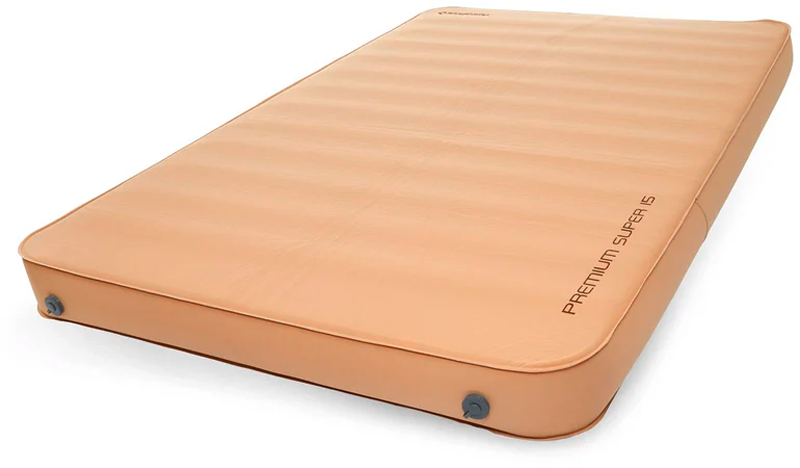 Luftbett Premium Deluxe – komfortabel schlafen zu jeder Jahreszeit Mit dem Luftbett Premium Deluxe schläfst Du wie zu Hause – egal ob beim Camping oder auf Reisen. Die großzügige Liegefläche, 15 cm Höhe und der atmungsaktive, hochisolierende Schaumstoffkern bieten Dir besten Schlafkomfort. Dank R-Wert 6.1 eignet sich die Matte für alle vier Jahreszeiten, sogar bei extremer Kälte. Sie ist wasserabweisend, robust, angenehm weich und lässt sich platzsparend verstauen. Details * hohe Isolierung (R-Wert 6.1) – ideal für alle Jahreszeiten * sehr dichter, atmungsaktiver Schaumstoffkern * 15 cm Höhe für beste Isolation vom Boden * wasserabweisende, reißfeste Oberfläche * modernes Ventil für schnelles Aufblasen * geringes Packmaß und hoher Liegekomfort Technische Daten * Maße: 201 × 128 × 15 cm * Packmaß: ca. 70 × 35 cm * Gewicht: ca. 6,2 kg Lieferumfang * 1 x Luftbett Premium Deluxe * 1 x Transportbeutel Gewicht: 6,2 kg, Material: Schaumstoff, Maße (LxBxH): 201 x 128 x 15 cm
