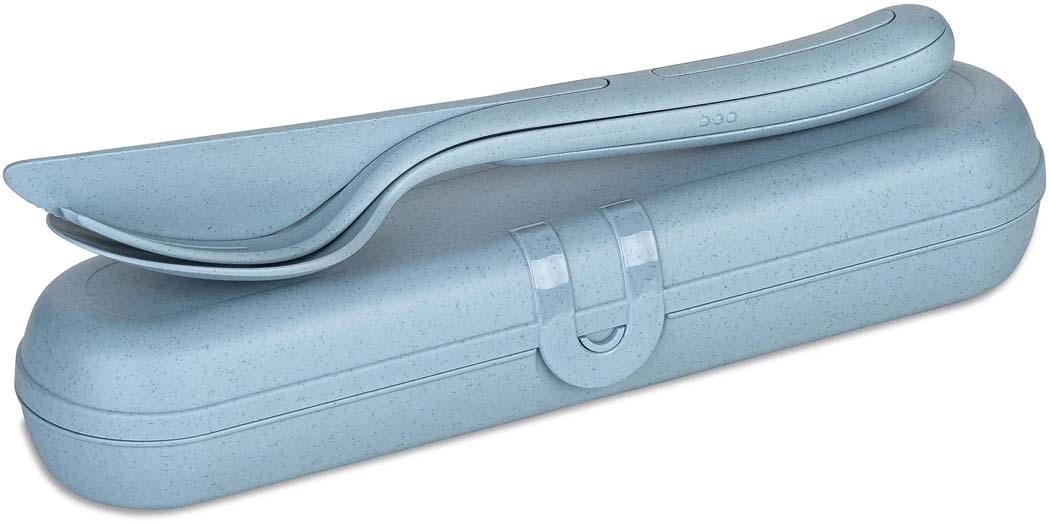 Koziol Besteck Etui + Besteckset KLIKK READY 2er-Set Nature Flower Blue – Campingbesteck