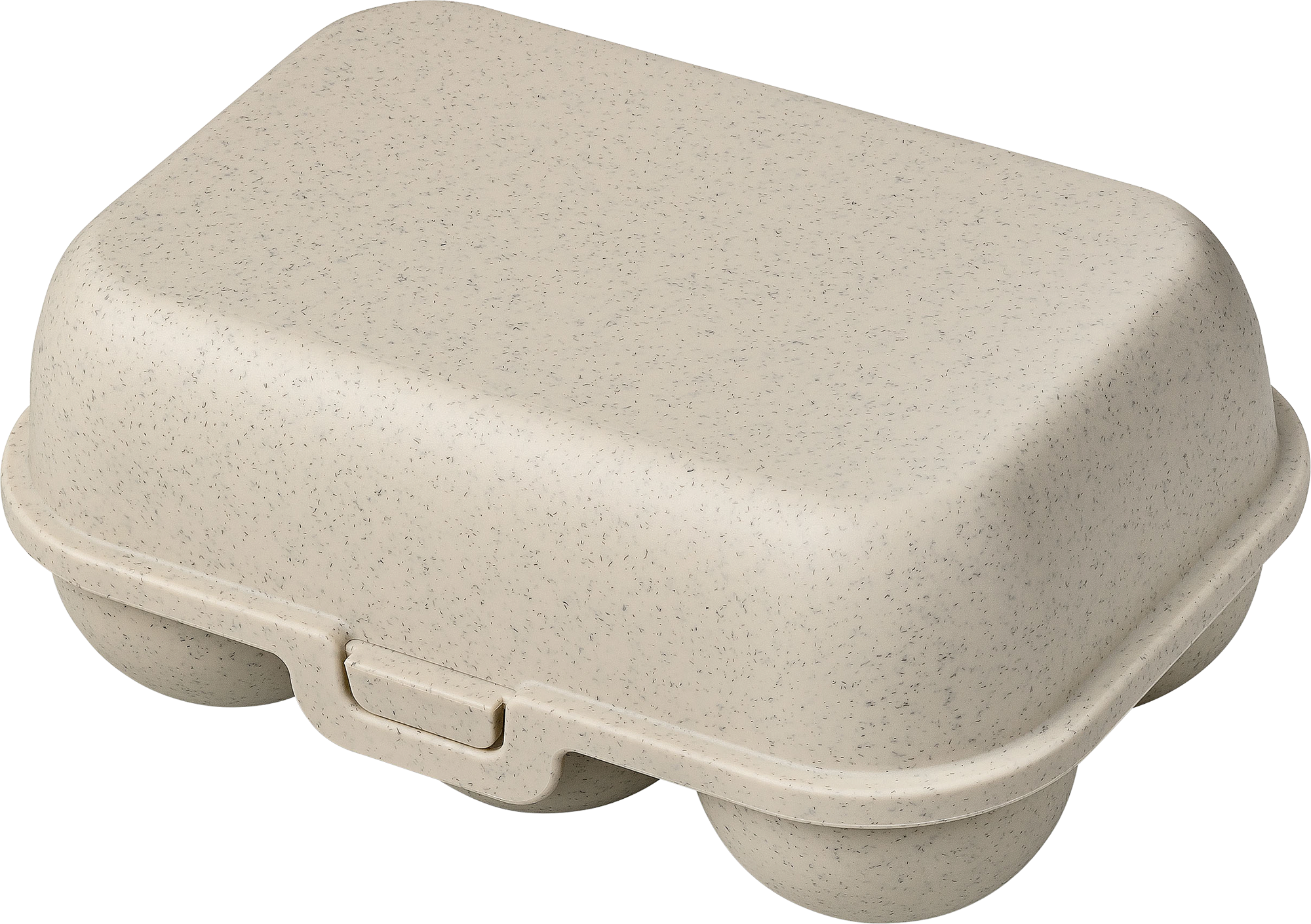 Die Mehrwegbox Die stabile Aufbewahrungsbox spart jede Menge Einwegkartons und verstaut bis zu sechs Eier sicher für den Nachhauseweg. Eggs to go mini ist perfekt zum Einkaufen auf dem Markt oder im nächsten Hofladen. Die Box transportiert bis zu sechs Eier sicher nach Hause und spart dazu jede Menge Einwegverpackungen. Sie hat einen praktischen Clipverschluss zum einfachen Öffnen und Schließen und das stoßfeste Material verhindert zuverlässig, dass die Eier beschädigt oder zerdrückt werden. Im Kühlschrank können die Boxen problemlos gestapelt werden, so bleibt mehr Stauraum für weitere Lebensmittel. Details * Robuste Box für 6 Eier * Mit Clipverschluss * Stapelbar * Leicht zu reinigen * 100 % CO₂-neutral * Spülmaschinengeeignet Ausführung: Eierbox Eggs to go mini desert sand, Gewicht: 135 g, Material: Organic Bio Circular, Farbe: desert sand, Maße (LxBxH): x x 0 cm