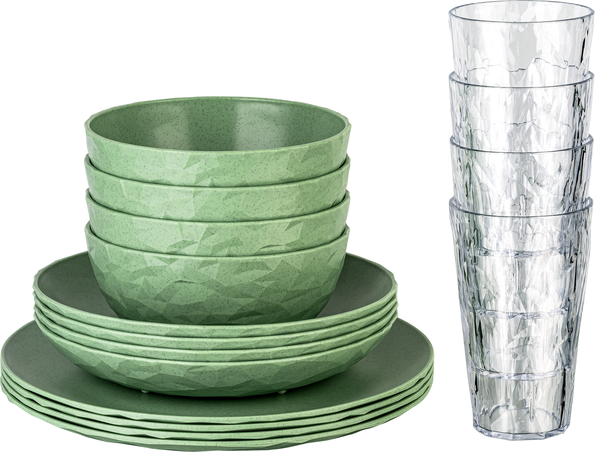 Koziol Exklusiv Göteborg Geschirr-Set 16-tlg. grün für 4 Personen – Kunststoff und Melamin Geschirr-Sets