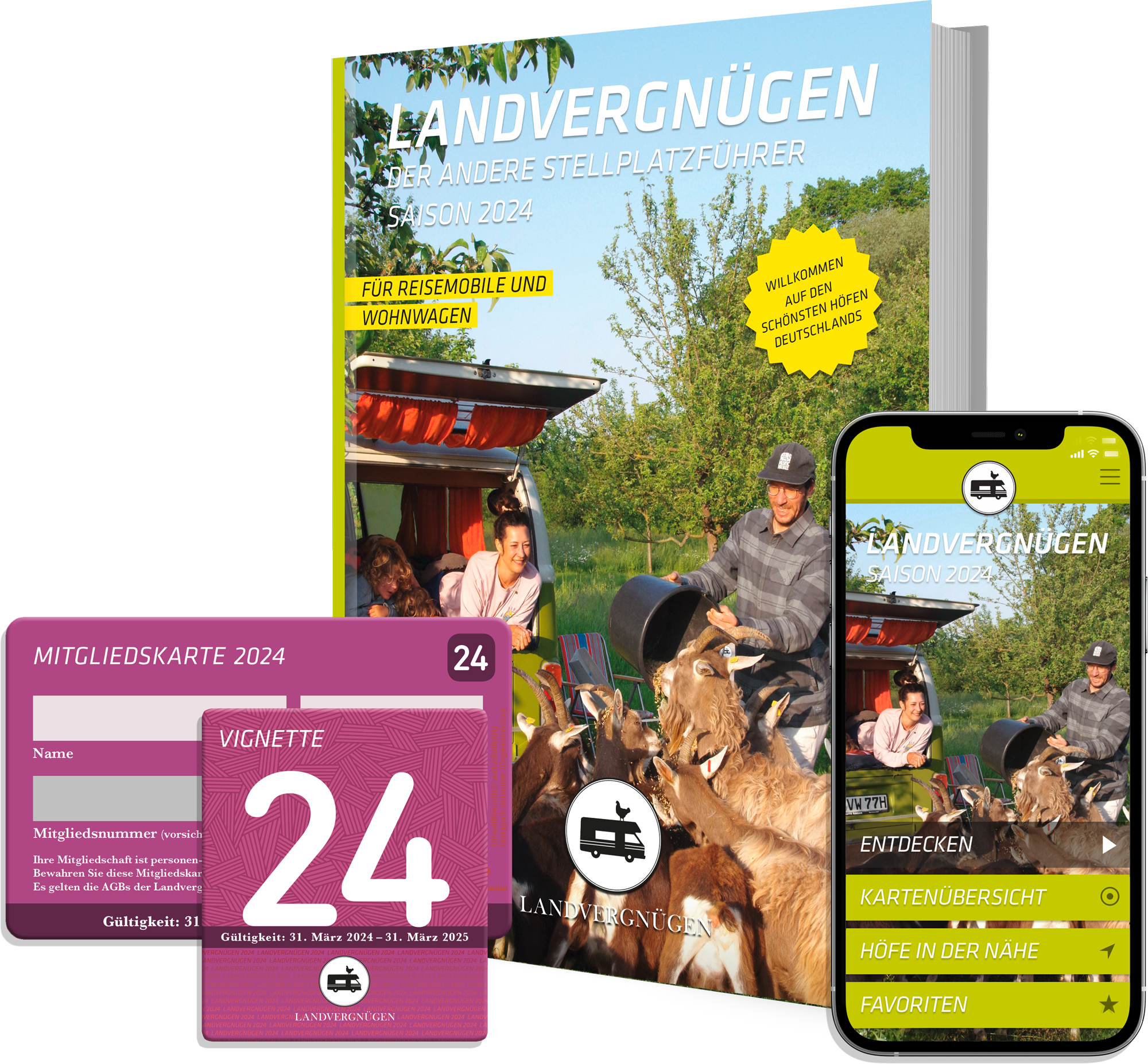 Landvergnügen 2024: Buch, Mitgliedskarte, Vignette & App für Reisen in Deutschland Jetzt verfügbar für Saison 2024! Sichere dir jetzt deine Mitgliedschaft: Genieße das Landleben mit Reisemobil, Campingbus und Wohnwagen. Mehr als 1.400 ländliche Gastgeberinnen und Gastgeber aus ganz Deutschland freuen sich auf deinen Besuch. Landvergnügen ist ein Reise- und Genussführer für Campingfreunde. Genieße regionale Spezialitäten und finde echte Geheimtipps auf dem Land. Details: * Für Reisemobil, Wohnwagen und Campingbus * inkl. Jahresvignette 2024 (31.03.2024 – 31.03.2025) * Die Jahresvignette und Mitgliedschaft sind personen- und fahrzeuggebunden und nicht übertragbar * Auf den schönsten Höfen Deutschlands kostenlos übernachten * Landleben, Ruhe, Natur & regionale Spezialitäten genießen * Rund 1.500 Gastgeberinnen und Gastgeber in ganz Deutschland heißen Sie willkommen * mit digitaler Ergänzung in Form der Landvergnügen App App-Steuerung: Ja, Art Campingliteratur: Stellplatzführer, Gebiet: Deutschland, Sprache: Deutsch