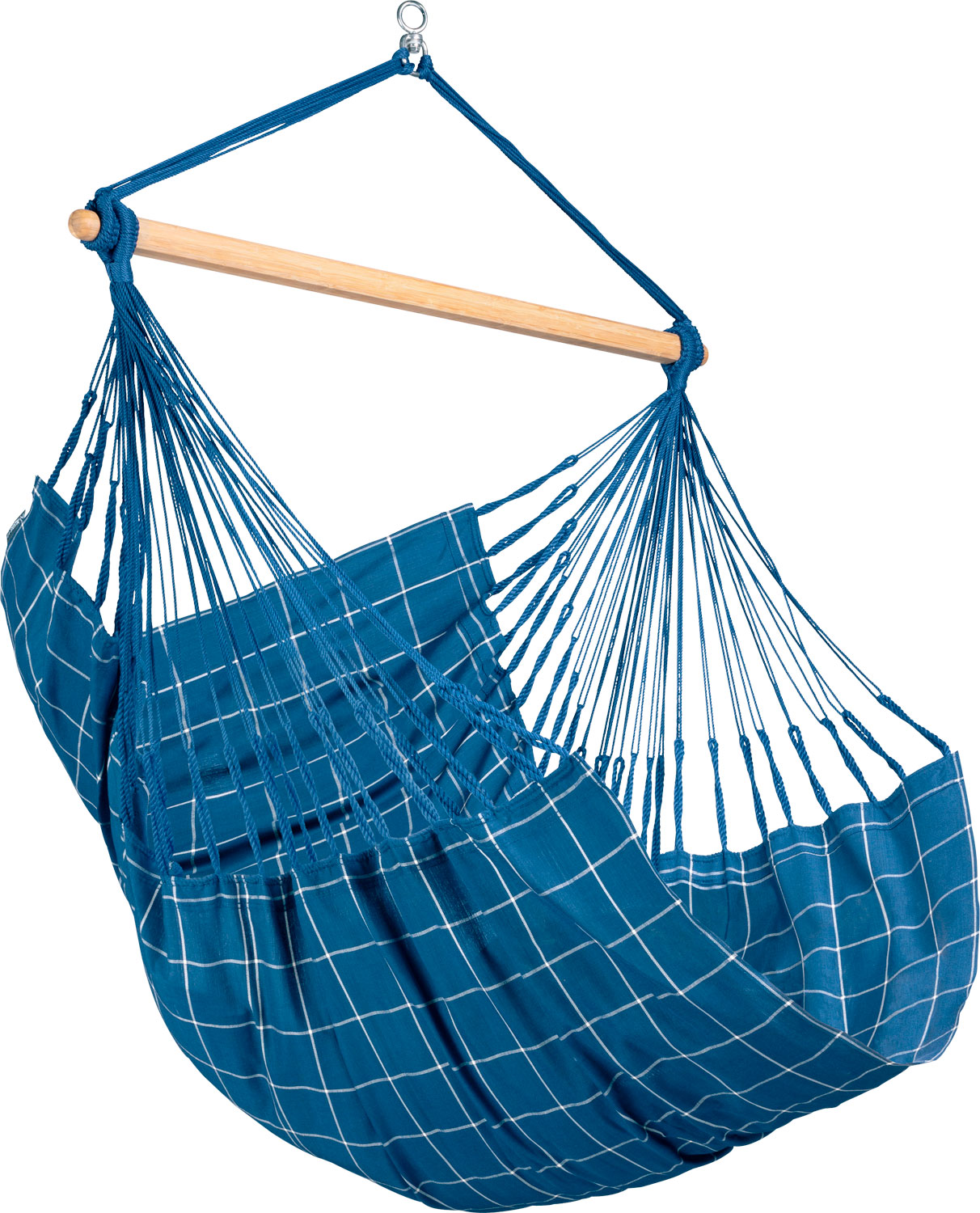 Die Definition von Schwerelosigkeit: Völlig losgelöst mit einem Hängestuhl so richtig die Seele baumeln lassen- ob im Sitzen oder Liegen. Die Hängestühle von La Siesta bieten genug Platz zum Sitzen oder bequemen Liegen – wie in einer gemütlichen Hängematte. Mit einer Stofffläche von 180 cm Länge bieten Comfort Hängestühle optimalen Sitz- und Liegegenuss auf kompaktem Raum. Die Funktionsfaser wurde speziell für die besonderen Anforderungen an Outdoor-Hängematten entwickelt. Sie ist einfach zu pflegen, schnelltrocknend und wetterbeständig.Durch Verdopplung der Schussfäden sind die Webkanten verstärkt und daher besonders reißfest. Dank speziellem Drehwirbel können Sie sich in Ihrem Hängestuhl angenehm und sicher um 360° drehen ohne dass die Aufhängeschnüre mitdrehen. Das hochwertige Bambusholz ist besonders stabil und edel. Aufgrund aufwändiger Plättchen-Technologie hat es eine angenehm glatte Oberfläche und ist äußerst witterungsbeständig. Das internationale Zertifizierungssystem des Forest Stewardship Council (FSC™) garantiert, dass das Holz aus ökologisch und sozial verantwortlich bewirtschafteten Wäldern stammt. Tipps & Pflege: * Platzbedarf: Für die Anbringung eines Hängestuhls ist je nach Modell eine Aufhängehöhe von 200-220 cm nötig. Befindet sich die Aufhängung an einem höheren Punkt, kann der Hängestuhl mit einem Seil verlängert werden. * Befestigung: Für die Aufhängung eines Hängestuhls benötigen Sie einen Aufhängepunkt, der sich an der Zimmerdecke, einem Ast oder einem Balken befindet. Ein Hängestuhl ist platzsparender als eine Hängematte und lässt sich gut in Ihren Wohnraum integrieren. Wird er nicht gebraucht, kann er mit einem Handgriff abgehängt werden. * Liegeposition: Comfort oder Kingsize Hängestühle bieten genug Platz, um sich hineinzulegen. Je länger der Spreizstab ist, desto mehr Freiheit haben Sie im Bereich des Oberkörpers. * Maschinenwäsche: Das Stoffteil des Hängestuhls ist abnehmbar, Sie können es bei 30°C im Schonprogramm waschen! * Bänder zusammenbinden: Binden Sie die Aufhängeschnüre vor dem Waschen zusammen, um zu verhindern, dass sie sich verknoten. * Kein Trockner: Um Ihr Produkt zu schonen, lassen Sie es nur lufttrocknen und geben Sie es nicht in den Trockner. * Trocken überwintern: Wir empfehlen Ihnen, die Hängematte vor der Winterpause zu reinigen. Nachdem sie vollständig getrocknet ist, kann sie zum Schutz vor Ungeziefer in Plastik verpackt und verstaut werden. Belastbar bis: 130 kg, Gewicht: 1,8 kg, Material: 100% Polypropylen – Wirbel: Edelstahl – Spreizstab: Bambus (FSC®-zertifiziert), Farbe: Marine