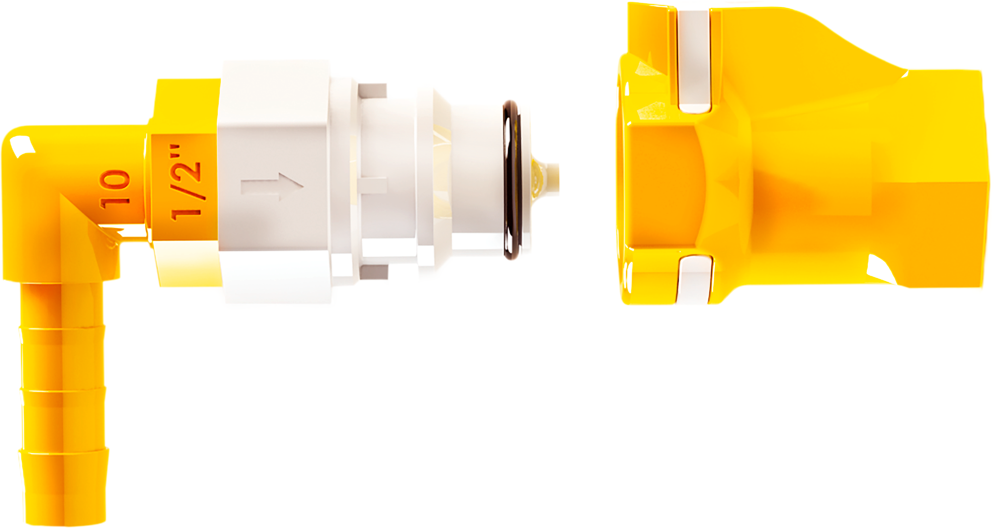 Lilie Push-and-Connect Ventiladapter Schnellkupplung Weissgelb inkl. Absperrfunktion gewinkelt 1/2 Zoll-Innengewinde x 10 mm – Schlauchadapter