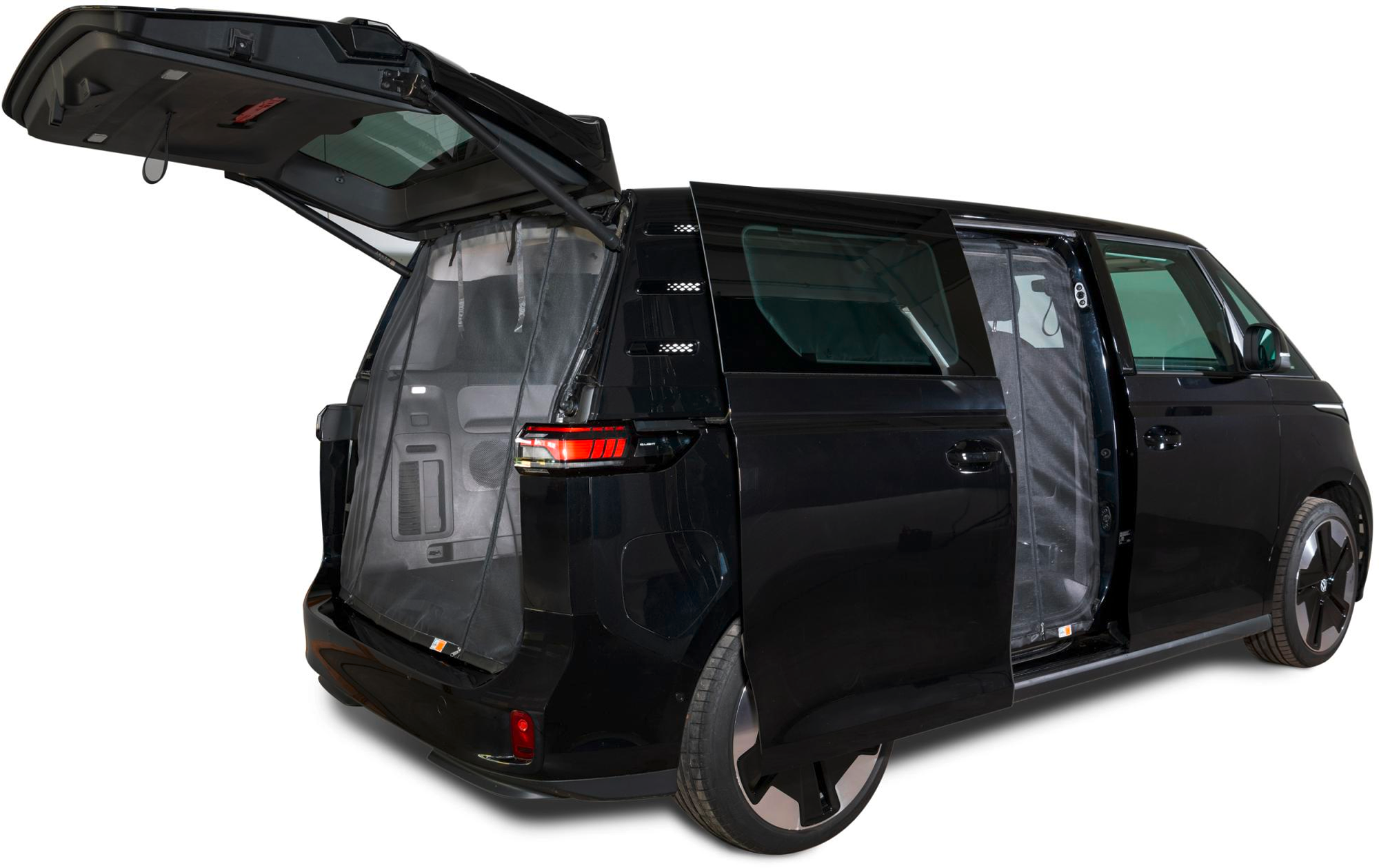 Schiebetürenmoskitonetz mit Reißverschluss für VW ID Buzz, Maschenweite Fine-mesh Genieße erholsamen Schlaf und frische Luft ohne Insekten – mit diesem passgenauen Moskitonetz für die linke Schiebetür deines VW ID Buzz. Das Netz überzeugt mit hochwertigem Material, praktischer Handhabung und zuverlässigem Schutz – ideal für warme Sommernächte. Hinweis: In Fahrzeugen mit Rechtslenkung (z. B. in England) befindet sich die Beifahrerseite auf der linken Seite. Details: * Umlaufendes elastisches Einfassband für schnelle Montage * Eingenähte, lackschonende Magnete für sicheren Halt * Hochwertiger Reißverschluss mit Arretierfunktion * UV- und witterungsbeständig * Hohe Licht- und Luftdurchlässigkeit * Wiederverwendbare Transporttasche Technische Daten: * Maschenweite: Fine-mesh, 0,94 x 0,94 mm, offene Fläche ca. 55 % * Material: Fiberglas mit Polyvinylchlorid (PVC)-Beschichtung * Farbe: Schwarz * Schließmechanik: Standardreißverschluss Lieferumfang: * Moskitonetz * Transporttasche * Montageanleitung Art Insektenschutz: Insektenschutz/Netz, Farbe: schwarz, Ausführung: Maschenweite Fine-mesh / Beifahrerseite rechts