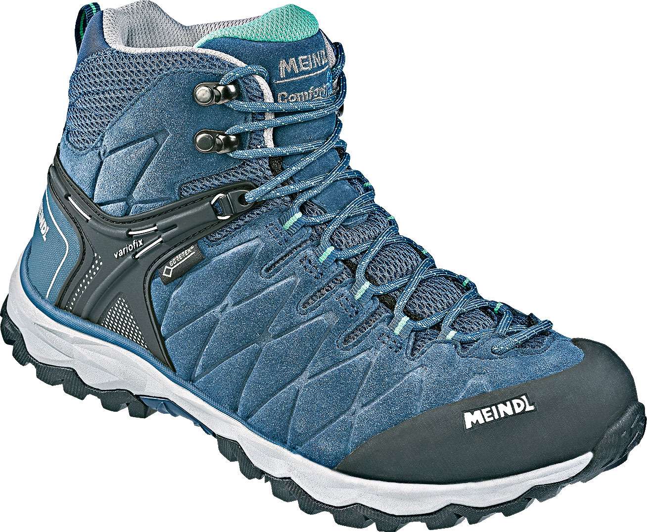 Meindl Mondello Lady Mid GTX – komfortabler Wanderschuh für vielseitige Touren Der Meindl Mondello Lady Mid GTX ist ein vielseitiger Wanderschuh aus der Comfort Fit-Reihe, der dir dank breiterem Vorderfußbereich viel Platz für deine Zehen bietet. Gleichzeitig sorgt ein fester, geformter Fersensitz für sicheren Halt. Die bis zur Spitze reichende Schnürung ermöglicht dir eine vollständig anpassbare Passform. Für optimalen Schutz verfügt der Schuh über einen hohen Zehenschutz aus Gummi, während das Gore-Tex-Futter deine Füße zuverlässig trocken hält. Die Meindl Multi Trail Komfortsohle in Kombination mit dem Air Active Wellness Sport Fußbett sorgt für hohen Tragekomfort – ideal für Wanderungen auf Wegen und Pfaden in niedriger Höhe. Details: * Breiter Vorderfußbereich für mehr Zehenfreiheit * Sicherer Halt durch festen Fersensitz * Wasserdicht dank Gore-Tex-Futter * Hoher Zehenschutz aus Gummi * Meindl Multi Trail Komfortsohle für sicheren Tritt * Air Active Wellness Sport Fußbett für hohen Komfort * Obermaterial aus Velourleder und Mesh Technische Daten: * Obermaterial: Velourleder, Mesh * Futter: Gore-Tex * Fußbett: Air Active (Wellness Sport) * Sohle: Meindl Multi Trail Comfort Lieferumfang: * 1 Paar Meindl Mondello Lady Mid GTX Damenwanderschuhe Art Schuhe: Wanderstiefel, Geschlecht: Damen, Material: Obermaterial: Veloursleder, Synthetik, Mesh-Gewebe, Wasserdicht: Ja, Farbe: jeans türkis, Größe: 41