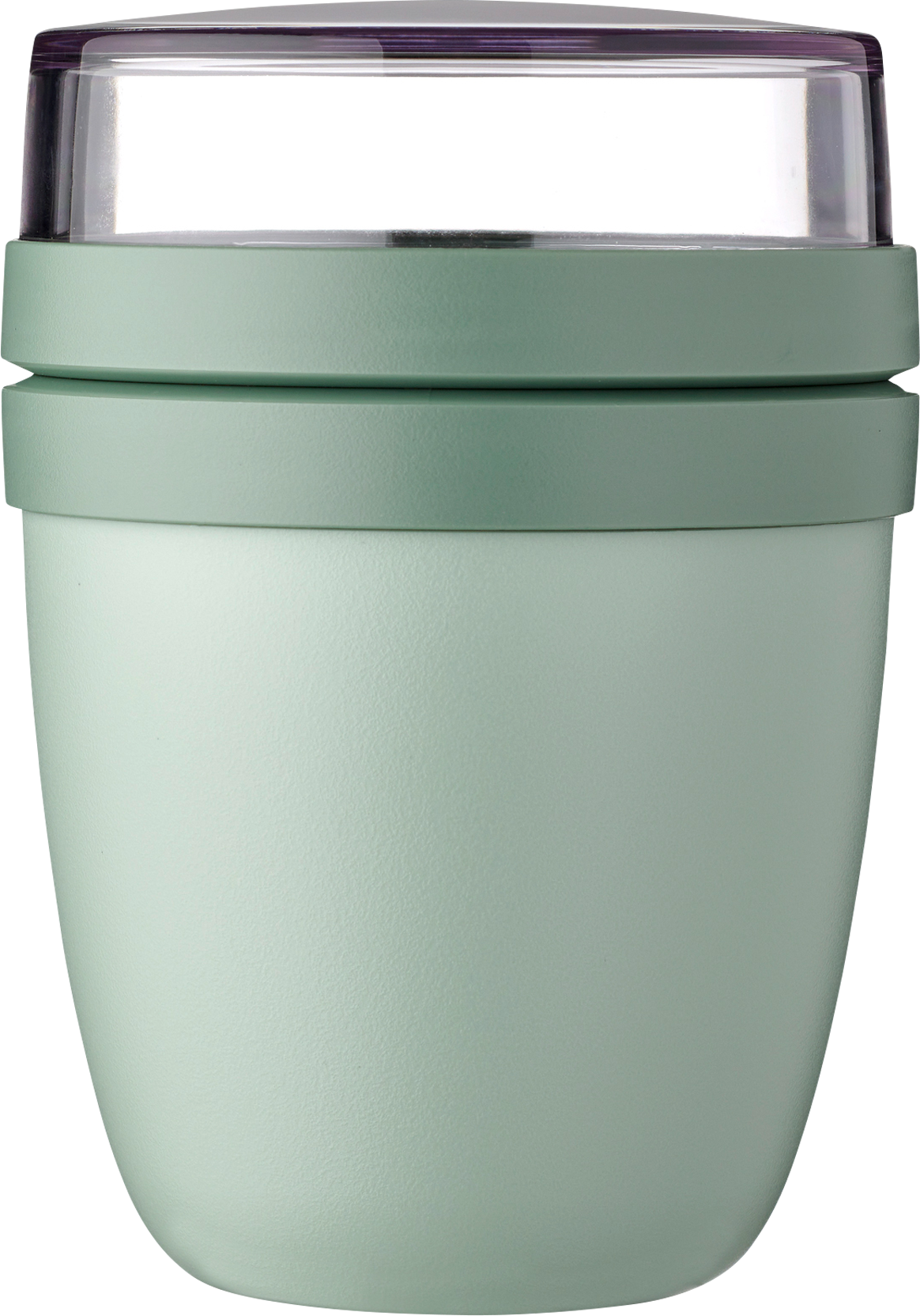 Mepal Lunchpot Ellipse – Frische Snacks und Mahlzeiten überall genießen Mit dem Mepal Lunchpot Ellipse transportierst du Joghurt, Müsli, Suppe oder Snacks bequem und auslaufsicher. Zwei separate Behälter halten Zutaten frisch, lassen sich bei Bedarf zusammenschrauben und später einfach mischen. Durch eine einfache Drehbewegung kannst du den Zwischendeckel auseinanderschrauben, während beide Behälter geschlossen bleiben und sich separat öffnen lassen. Verwende ihn als Suppen-, Joghurt- oder Müslibecher to go – ideal für Kombinationen wie Joghurt mit Müsli, Suppe mit Croutons oder Rohkost mit Dipp. Dank austauschbarer Deckel und nachhaltigem, spülmaschinengeeignetem Material ist der Lunchpot perfekt für Schule, Arbeit oder unterwegs – die Mini-Variante eignet sich ideal für Kinder und kleine Snacks. Details: * Erhältlich in zwei Größen: Ellipse und Ellipse mini * Zwei separate, auslaufsichere Behälter zum Frischhalten und späteren Vermischen * Zwischendeckel lässt sich durch Drehbewegung auseinanderschrauben, beide Behälter bleiben geschlossen * Deckel beider Behälter sind untereinander austauschbar * Verwendbar als Suppen-, Joghurt- oder Müslibecher to go * Nachhaltiges, spülmaschinen- und tiefkühlgeeignetes Material * Frei von Bisphenol A (BPA) Technische Daten: * Lunchpot Ellipse mini: oberer Behälter 120 ml (ca. 50 g Inhalt), unterer Behälter 300 ml * Lunchpot Ellipse: oberer Behälter 200 ml (ca. 75 g Inhalt), unterer Behälter 500 ml * Material: Kunststoff (Polypropylen, PCTG) * Farben: nordic blue, nordic black, nordic sage oder vivid mauve Lieferumfang: * 1x Mepal Lunchpot Ellipse (je nach Variante) Material: Polypropylen, PCTG, Farbe: grün, Volumen: 420 ml