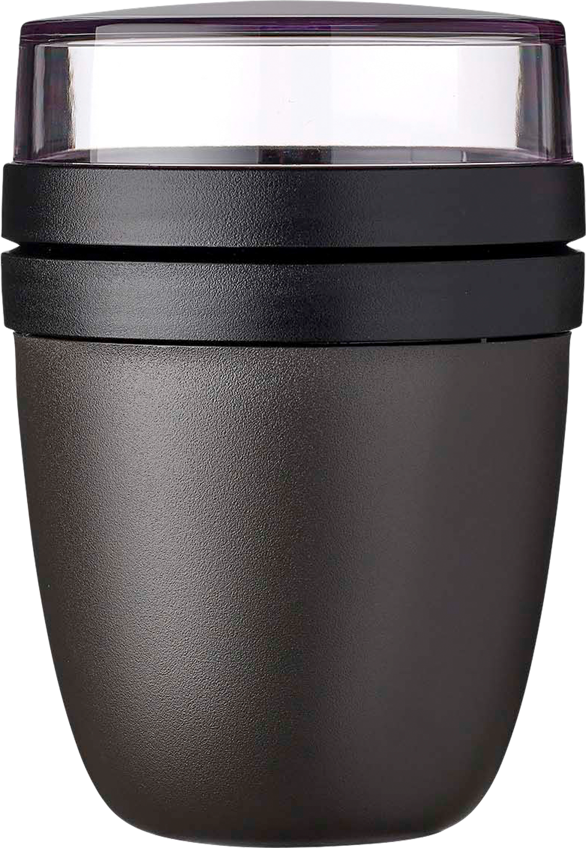 Mepal Lunchpot Ellipse – Frische Snacks und Mahlzeiten überall genießen Mit dem Mepal Lunchpot Ellipse transportierst du Joghurt, Müsli, Suppe oder Snacks bequem und auslaufsicher. Zwei separate Behälter halten Zutaten frisch, lassen sich bei Bedarf zusammenschrauben und später einfach mischen. Durch eine einfache Drehbewegung kannst du den Zwischendeckel auseinanderschrauben, während beide Behälter geschlossen bleiben und sich separat öffnen lassen. Verwende ihn als Suppen-, Joghurt- oder Müslibecher to go – ideal für Kombinationen wie Joghurt mit Müsli, Suppe mit Croutons oder Rohkost mit Dipp. Dank austauschbarer Deckel und nachhaltigem, spülmaschinengeeignetem Material ist der Lunchpot perfekt für Schule, Arbeit oder unterwegs – die Mini-Variante eignet sich ideal für Kinder und kleine Snacks. Details: * Erhältlich in zwei Größen: Ellipse und Ellipse mini * Zwei separate, auslaufsichere Behälter zum Frischhalten und späteren Vermischen * Zwischendeckel lässt sich durch Drehbewegung auseinanderschrauben, beide Behälter bleiben geschlossen * Deckel beider Behälter sind untereinander austauschbar * Verwendbar als Suppen-, Joghurt- oder Müslibecher to go * Nachhaltiges, spülmaschinen- und tiefkühlgeeignetes Material * Frei von Bisphenol A (BPA) Technische Daten: * Lunchpot Ellipse mini: oberer Behälter 120 ml (ca. 50 g Inhalt), unterer Behälter 300 ml * Lunchpot Ellipse: oberer Behälter 200 ml (ca. 75 g Inhalt), unterer Behälter 500 ml * Material: Kunststoff (Polypropylen, PCTG) * Farben: nordic blue, nordic black, nordic sage oder vivid mauve Lieferumfang: * 1x Mepal Lunchpot Ellipse (je nach Variante) Material: Polypropylen, PCTG, Farbe: schwarz, Volumen: 700 ml, Maße (LxBxH): 107 x 107 x 151 mm