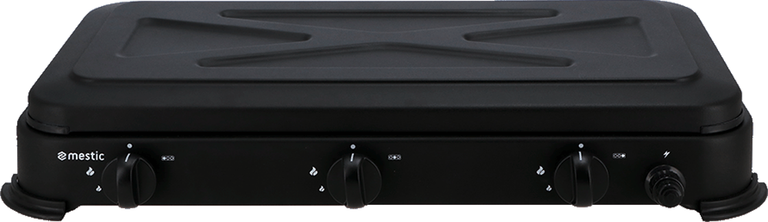Mestic MGC Gaskocher – Vielseitiger Gaskocher für den Campingplatz Mit dem Mestic MGC Gaskocher kannst Du auch unterwegs komfortabel kochen. Der Kocher verfügt über drei Brenner – und bietet ausreichend Platz für mehrere große Töpfe. Dank rutschfester Füße steht er sicher auf jedem Untergrund. Die abnehmbare Topfauflage sowie emaillierte Teile erleichtern die Reinigung. Der Deckel dient geschlossen als Ablage und geöffnet als Windschutz. So wird Kochen auf dem Campingplatz zum Vergnügen. Details: * Über drei leistungsstarke Brenner für vielseitiges Kochen * Rutschfeste Füße für sicheren Stand * Deckel mit Windschutzfunktion * Einfach zu reinigen durch abnehmbare Topfauflage Technische Daten: * Anschluss: 30 mbar oder 30 mbar (für Propan- oder Butangas) * Mit hitzebeständigem Gehäuse * Mit Kontrollleuchte * Thermostat regulierbar Bei Mestic MGC-200 Gaskocher 30 mbar mit 2 – Gasbrenner: * Anzahl der Brenner: 2 x 2,2 kW * Max. Gasverbrauch pro Kochfeld: 320 g/h * Breite: 37,5 cm * Höhe: 9,5 cm * Länge: 59 cm * Gewicht: 3,6 kg * Leistung: 4,4 kW Bei Mestic MGC-300 Gaskocher 50 mbar mit 2 – Gasbrenner: * Anzahl der Brenner: 2 x 2,2 kW * Max. Gasverbrauch pro Kochfeld: 320 g/h * Breite: 37,5 cm * Höhe: 9,5 cm * Länge: 59 cm * Gewicht: 3,6 kg * Leistung: 4,4 kW Bei Mestic MGC-300 Gaskocher 30 mbar mit 3 – Gasbrenner: * Anzahl der Brenner: 2 x 2,2 kW, 1 x 0,85 kW * Max. Gasverbrauch pro Kochfeld: 382 g/h * Breite: 33 cm * Höhe: 9,8 cm * Länge: 60,7 cm * Gewicht: 3,9 kg * Leistung: 5,25 kW Bei Mestic MGC-400 Gaskocher 30 mbar mit 4 – Gasbrenner: * Anzahl der Brenner: 2 x 2,2 kW, 1 x 1,20 kW * Max. Gasverbrauch pro Kochfeld: 496 g/h * Breite: 53,8 cm * Höhe: 11 cm * Länge: 51,7 cm * Gewicht: 5 kg * Leistung: 6,8 kW Lieferumfang: * 1x Mestic Gaskocher MGC-XXX (je nach der Variante) * 1x Deckel mit Windschutzfunktion * 1x Abnehmbare Topfauflage Ausführung: MGC – 300 30 mbar mit 3 – Gasbrenner, Farbe: Schwarz, Gasdruck: 30 mbar, Gasverbrauch max.: 30 mbar, Anzahl-Brennstellen: 3 Flammen