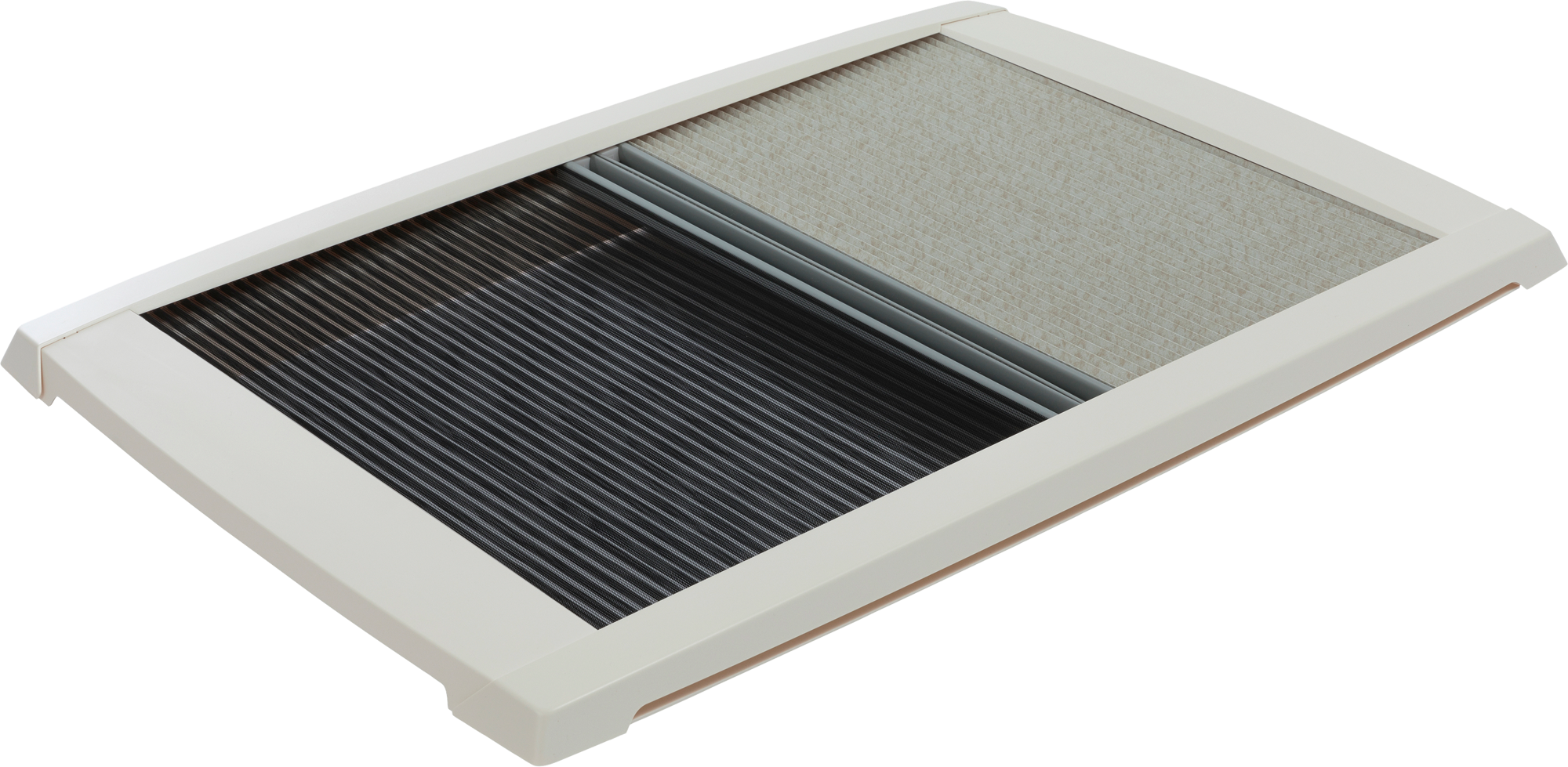 Die VisionStar L Pro Rauchglas Dachhaube von MPK mit Doppelverglasung aus schlagzähem Polycarbonat mit modernen Design. Dank der flachen Haube, sind die Fahrgeräusche im Inneren sehr gering. Die einfache Einhand-Bedienung mittels Bügelgriff erlaubt eine stufenlose Aufstellung bis zu 55°. Bei Betätigung de Aufstellmechanismus ver- und entriegelt die Haube automatisch. Der doppelwandige Außenrahmen sorgt für eine bessere Isolation. Der Innenrahmen mit Doppelplissee schützt zuverlässig vor Sonneneinstrahlung und Insekten. Rauchglashaube für einen besseren UV-Schutz. Dauerlüftung bis zu 150 cm². Details – einfache Einhandbedienung mit Bügelgriff – stufenlos aufstellbar bis 55° – flache Haube (nur 105 mm ü. D.) – stark reduzierte Fahrgeräusche und Zugluft – doppelwandiger Rahmen für bessere Isolation – Dauerlüftung auch bei geschlossenen Plissees – hoher UV-Schutz durch getöntes Haubenmaterial – robuste Hauben aus schlagzähem Polycarbonat Technische Daten -Eckradius: 23 mm -Haubenmaß: 815 x 583 mm Höhe über Dach: 105 mm Rahmenmaße: 872 x 610 x 37 mm Aufstellwinkel bis: 50 °, Dauerlüftung: 150 cm², Haubenglas: Doppelverglasung, UV stabilisiert: Ja, Ausschnitt Breite: 500 mm, Ausschnitt Länge: 700 mm, Verdunkelung: , Gewicht: 7,97 kg, Ausführung: Signalweiß, Dachstärke von: 25 mm, Dachstärke bis: 60 mm