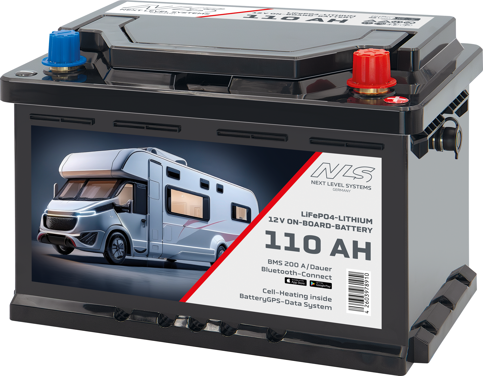 Next Level Systems LiFePO4 Bordbatterie für Reisefahrzeuge mit Bluetooth und Heizung 110 Ah – Fahrzeug-Batterien