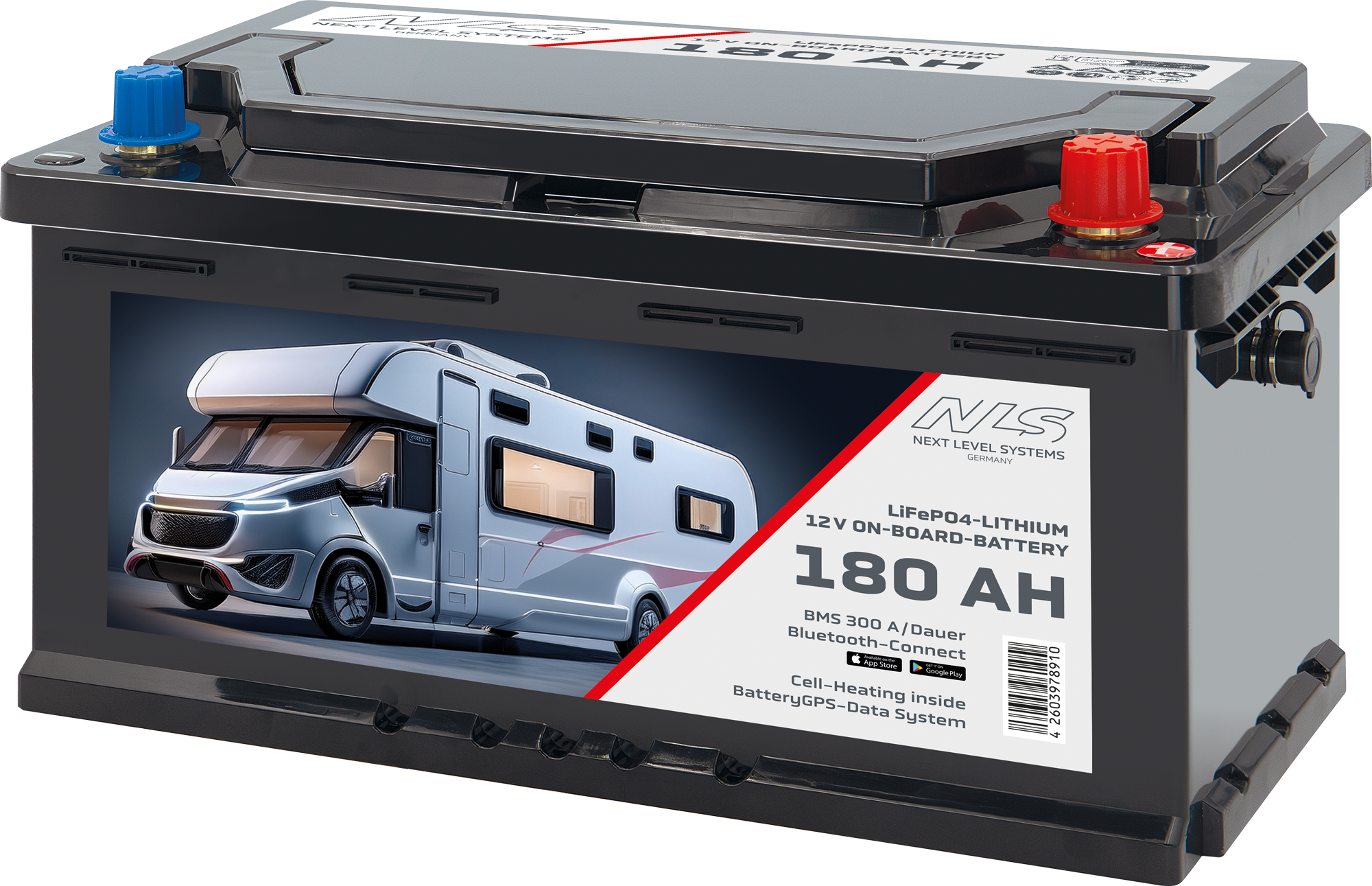 Next Level Systems LiFePO4 Bordbatterie für Reisefahrzeuge mit Bluetooth und Heizung 180 Ah – Fahrzeug-Batterien