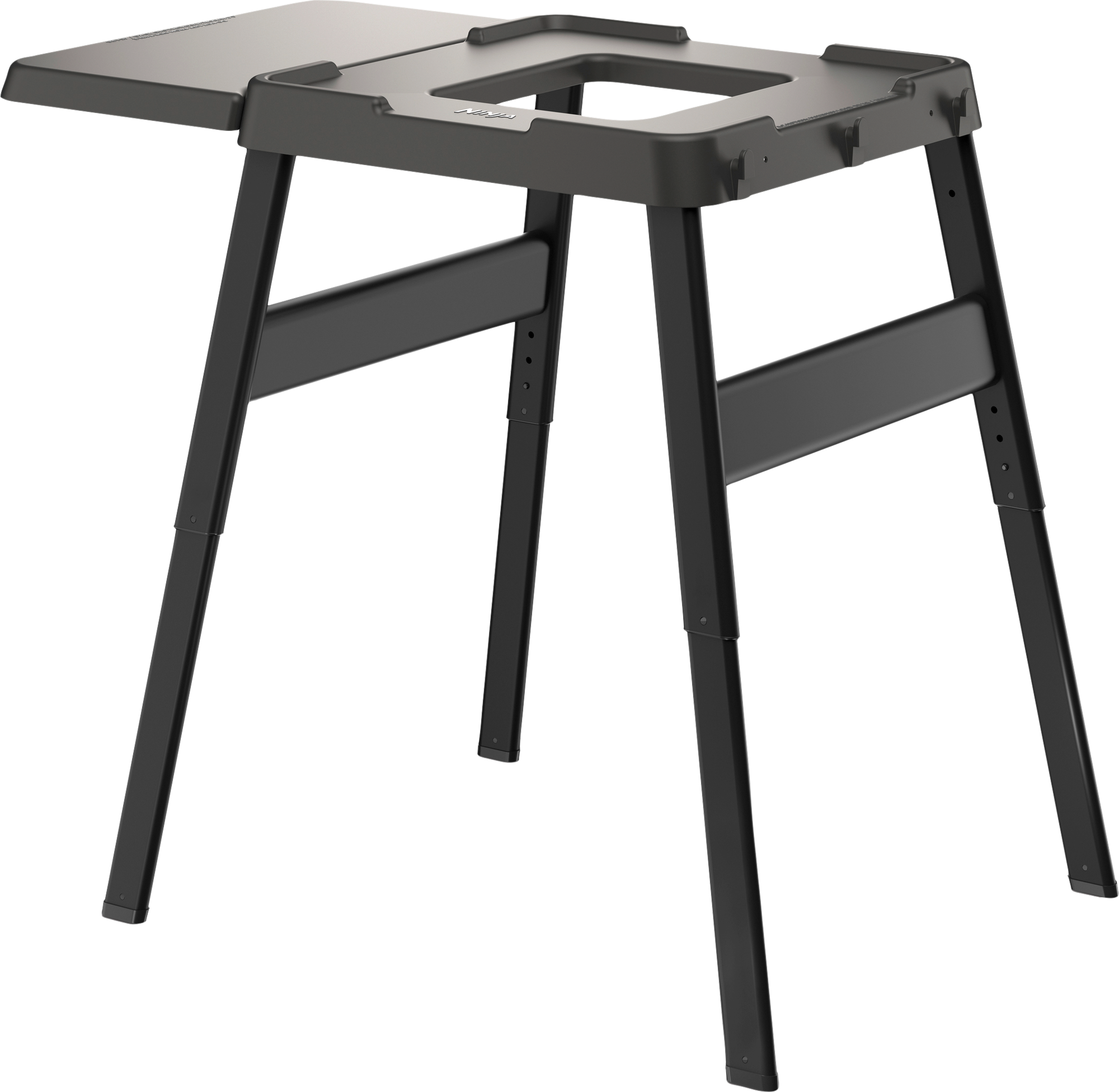 Ninja Woodfire höhenverstellbarer Ständer mit Seitentisch – mehr Komfort beim Outdoor-Kochen Mit dem höhenverstellbaren Ständer und dem integrierten Seitentisch holst du das Beste aus deiner Outdoor-Küche heraus. Der robuste Ständer bietet deinem Ninja Woodfire Grill sicheren Halt, während du auf dem Seitentisch bequem Zutaten vorbereiten kannst. Die Höhe ist individuell einstellbar, ideal für verschiedene Kochsituationen im Garten, auf dem Balkon oder beim Camping. Details: * Höhenverstellbar für komfortables Arbeiten * Stabiler Stand für Ninja Woodfire Grills und Öfen * Seitentisch für zusätzliche Ablage- und Vorbereitungsfläche * Robuste Bauweise mit Stahlbeinen und Kunststofftisch * Für den Außenbereich geeignet * Einfacher Zusammenbau mit mitgeliefertem Werkzeug Technische Daten: * Material: Tisch aus Kunststoff, Beine aus Stahl * Produktmaße: 62,6 cm × 22,7 cm × 61,7 cm * Produktgewicht: 7,72 kg * Verpackungsgewicht: 10,14 kg * Verpackungsgröße: 62,9 cm × 24,4 cm × 64,4 cm * Farbe: schwarz Lieferumfang: * 1 × Höhenverstellbarer Ständer * 1 × Seitentisch * 4 × Standbeine * 14 × Sechskantschrauben * 1 × Sechskantschlüssel