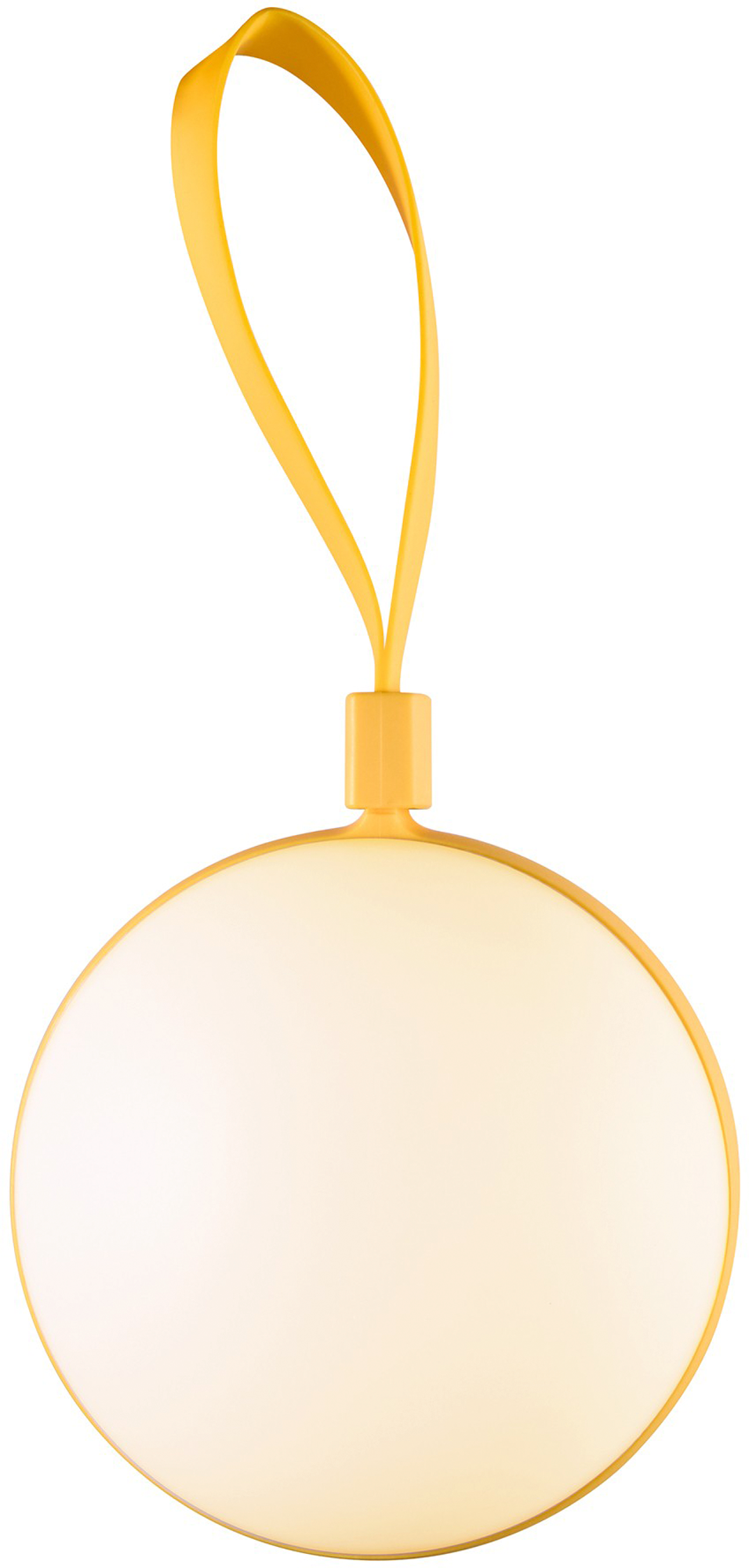 Nordlux Bring To-Go 12 Akkuleuchte – stilvolles Licht zum Mitnehmen Bring To-Go ist eine tragbare Akkuleuchte für den Außenbereich, designt von Timothy Jacob Jensen und Alasdair McPhail. Die runde Lichtfläche wird von einem schwarzen Gummiband umfasst, das als Griff oder Aufhängung dient. Du kannst das Licht durch Antippen ein- oder ausschalten und in zwei Stufen dimmen. Mit recycelten Materialien gefertigt, IP54-zertifiziert und per USB-C wiederaufladbar, begleitet Dich Bring zuverlässig an Strand, Balkon oder Garten. Details * Tragbare LED-Außenleuchte mit Moodmaker-Dimmfunktion * Per Antippen bedienbar (2 Helligkeitsstufen + Aus) * Gehäuse aus recyceltem Kunststoff * Griff/Aufhängung aus elastischem Gummiband * Wasserabweisend (IP54) * Ideal für Terrasse, Balkon, Camping oder unterwegs * Akkulaufzeit: 8 h (70 lm), 24 h (20 lm) * Ladezeit: ca. 6 Stunden über USB-C Technische Daten * Typ: Akkuleuchte * Lichtquelle: integrierte LED, 1 W (nicht austauschbar) * Lichtfarbe: warmweiß (2700 K), Ra-Wert: 80 * Helligkeit: 70 lm * Material: Kunststoff (recycelt), Farbe: weiß/schwarz * Schutzklasse: Klasse 3 (12 V) * Schutzart: IP54 * Maße: Höhe 26 cm, Durchmesser 12 cm * Gewicht: 0,23 kg * Kabellänge: 100 cm Lieferumfang * 1 × Nordlux Bring To-Go 12 Akkuleuchte * 1 × USB-C Ladekabel (100 cm) Art Leuchten elektrisch: Hängelampe, Farbe: weiss/gelb