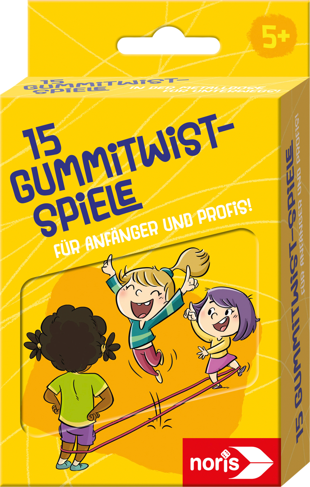 Noris 15 Gummitwist-Spiele – Für Anfänger und Profis Der Klassiker ist zurück und sorgt für frischen Wind! Mit den 15 Gummitwist-Spielen bringst du Bewegung und gute Laune in jeden Garten, Schulhof oder Spielplatz. Zwei Kinder stehen sich gegenüber und spannen das Band, während das dritte loshüpft und versucht, die Sprungkombinationen fehlerfrei zu meistern. Mit jeder Runde steigt der Schwierigkeitsgrad – von den Knöcheln bis zur Hüfte. Im beiliegenden Heft findest du alle Spielvarianten Schritt für Schritt erklärt. Ob Klassiker wie „Zick-Zack“ oder neue Hüpfideen, hier ist für jede Menge Abwechslung gesorgt. Dank der kompakten Metalldose kannst du das Spiel überallhin mitnehmen. Details: * Mit 15 Spielvarianten für Anfänger und Profis * Booklet mit Schritt-für-Schritt-Anleitungen * Buntes Hüpfgummi, ca. 380 cm lang * Ideal als Mitbringspiel in der Metalldose * Altersempfehlung: ab 5 Jahren Technische Daten: * Marke: Noris * Verpackungsmaße: 10,5 × 4 × 17,5 cm (B × L × H) Lieferumfang: * 1 x Noris Metalldose mit ca. 380 cm Hüpfgummi und Booklet mit 15 Spielvarianten Farbe: grün