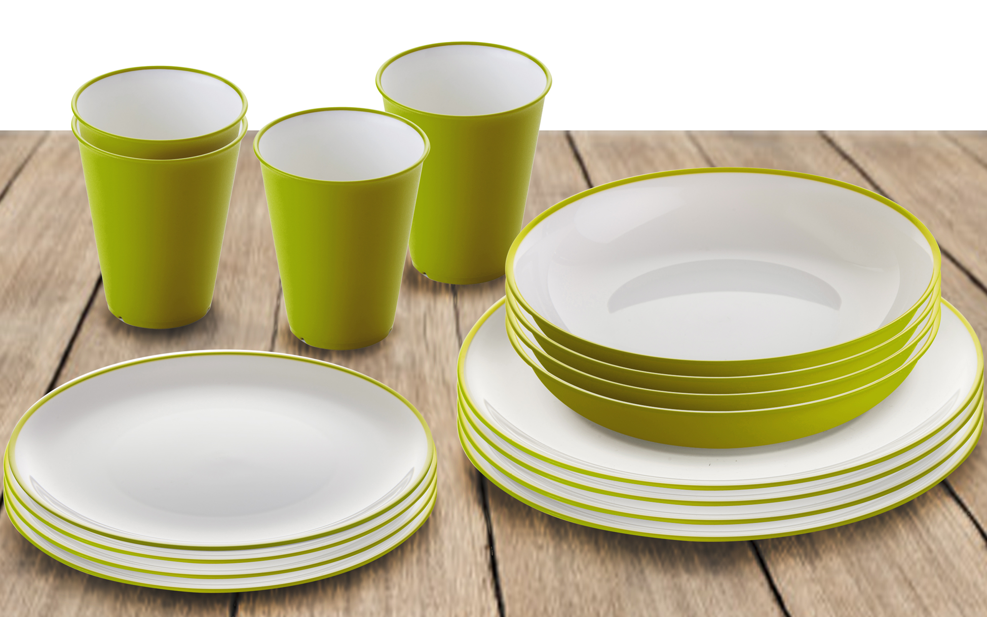 Omada Essgeschirr-Set 16-tlg. apfelgrün für 4 Personen – Kunststoff und Melamin Geschirr-Sets