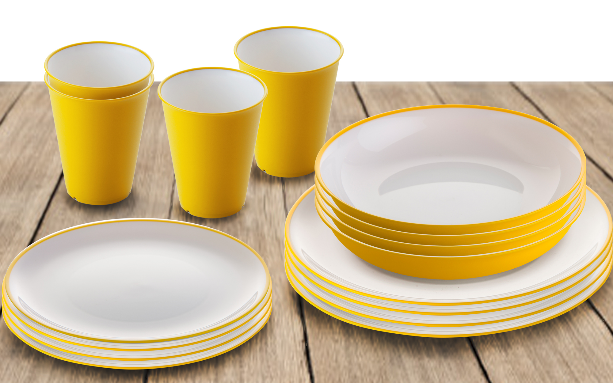 Omada Essgeschirr-Set 16-tlg. gelb für 4 Personen – Kunststoff und Melamin Geschirr-Sets