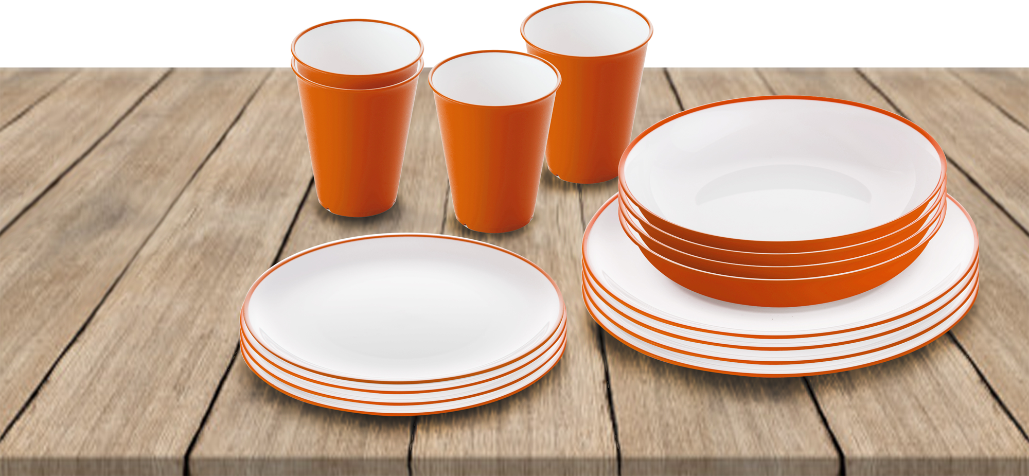 Omada Essgeschirr-Set 16-tlg. orange für 4 Personen – Kunststoff und Melamin Geschirr-Sets
