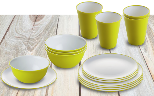 Omada Essgeschirr-Set mit Müslischüssel 16-tlg. apfelgrün für 4 Personen – Kunststoff und Melamin Geschirr-Sets
