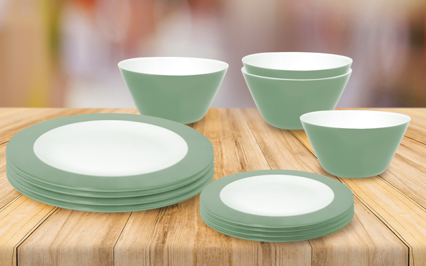 Omada Teller- und Schüssel-Set 12-tlg. grün für 4 Personen – Kunststoff und Melamin Geschirr-Sets
