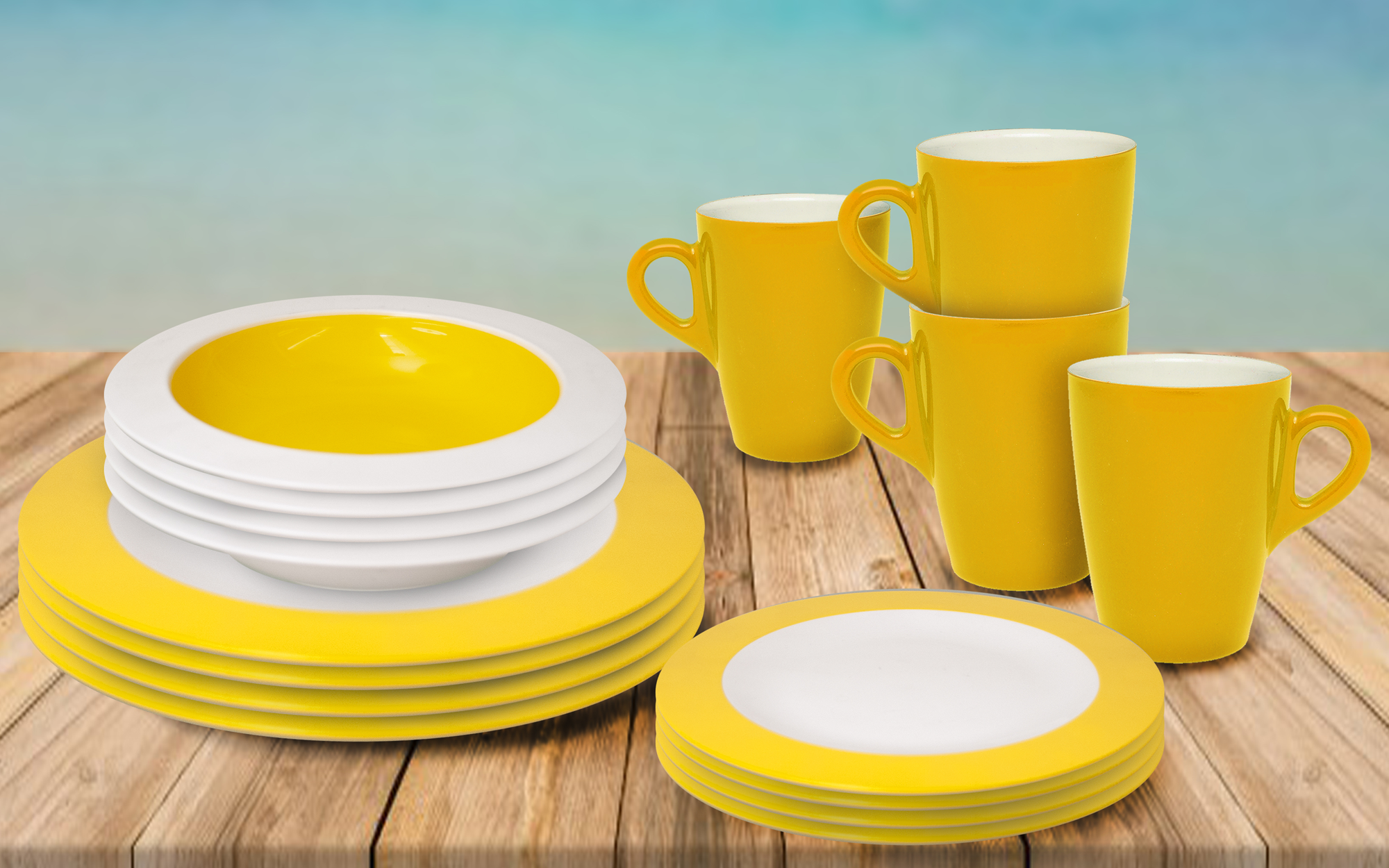 Omada Teller- und Schüssel-Set 16-tlg. gelb für 4 Personen – Kunststoff und Melamin Geschirr-Sets