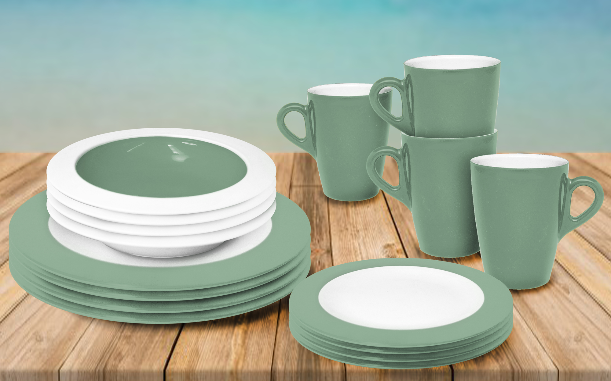 Omada Teller- und Schüssel-Set 16-tlg. grün für 4 Personen – Kunststoff und Melamin Geschirr-Sets