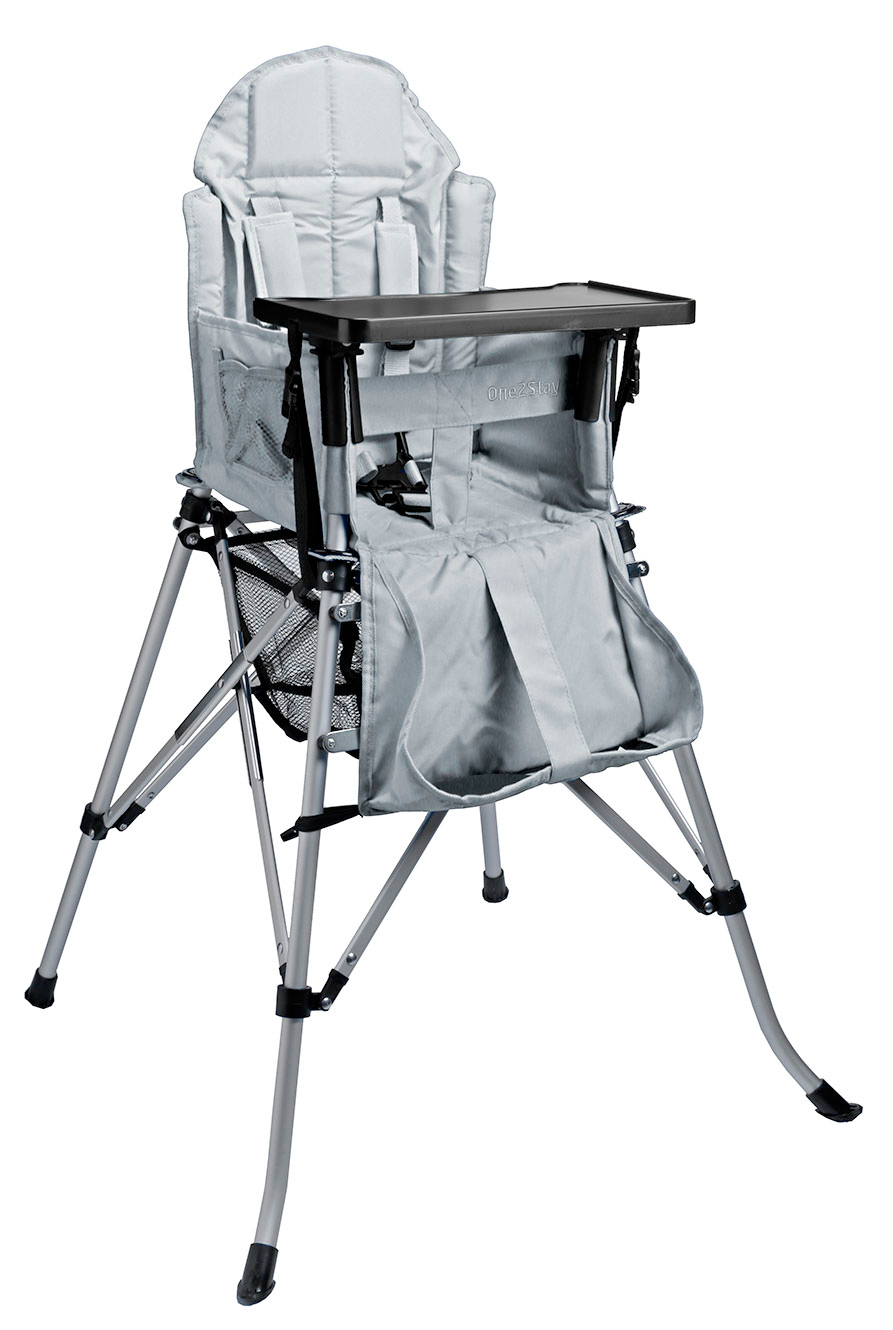 One2Stay Kinderhochstuhl faltbar mit abnehmbaren Esstisch silber – Kinderstühle
