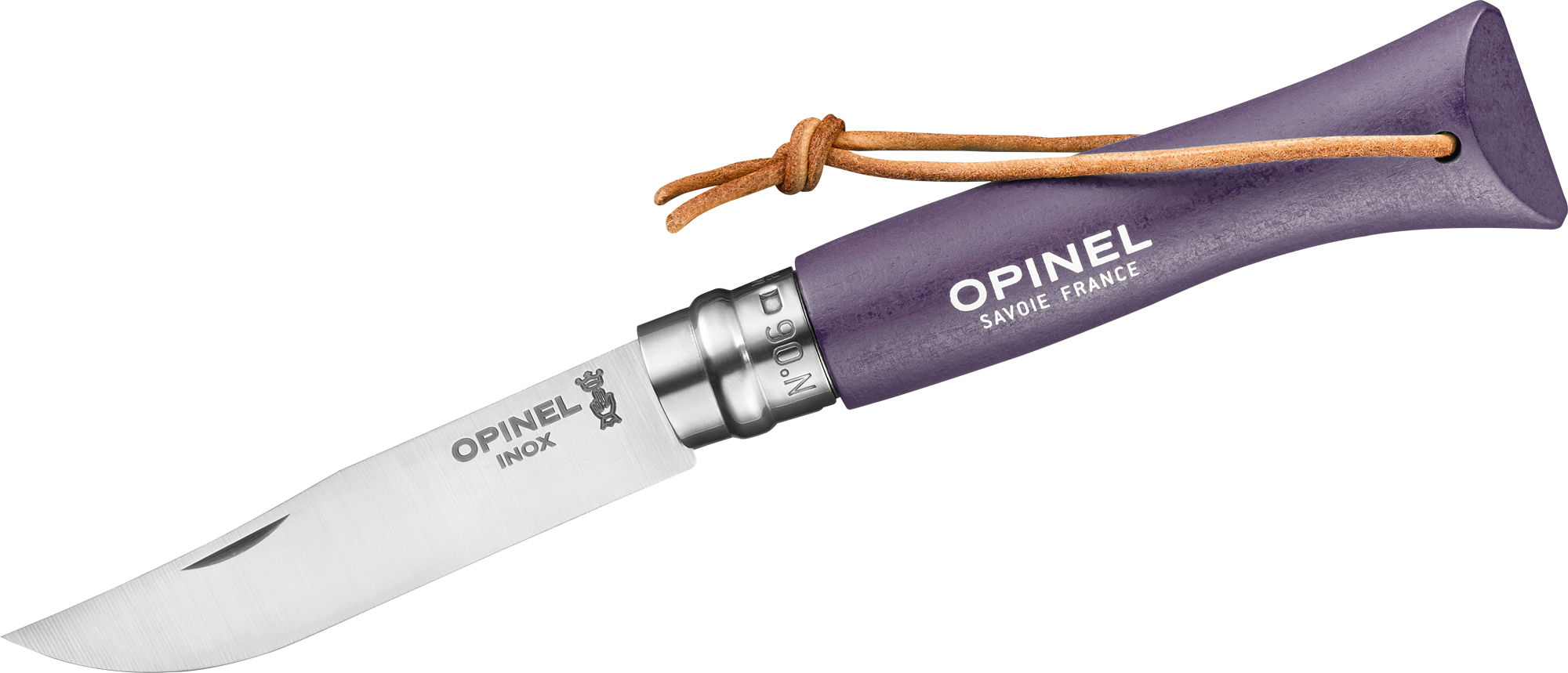 Opinel N°06 Colorama Art Deco Taschenmesser mit Lederkordel Klingenlänge 7 cm flieder – Campingbesteck