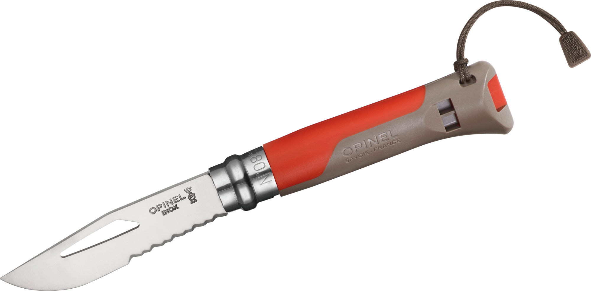 Opinel N°08 Outdoor Taschenmesser mit Signalpfeife Klingenlänge 8,5 cm rot – Campingbesteck