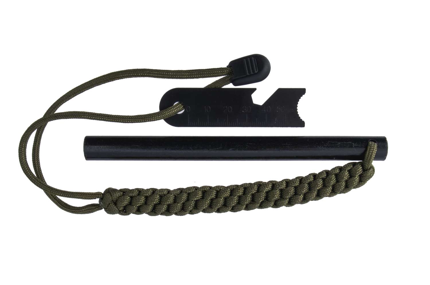 Mit bis zu 22.000 Zündungen gehört der Zündstahl Goliath zu den langlebigsten seiner Art. Die Größe macht die Handhabung vor allem mit dem Messerrücken sehr einfach und effektiv. Ausgestattet mit ca. 3 m Paracord ist der Zündstahl unerlässlich für jede professionelle Survivalausrüstung. Details * Paracord * Feuerstahl Magnesiumlegierung, 15 cm * mit ca. 3 m Paracord Durchmesser: 1,2 cm, Gewicht: 149 g