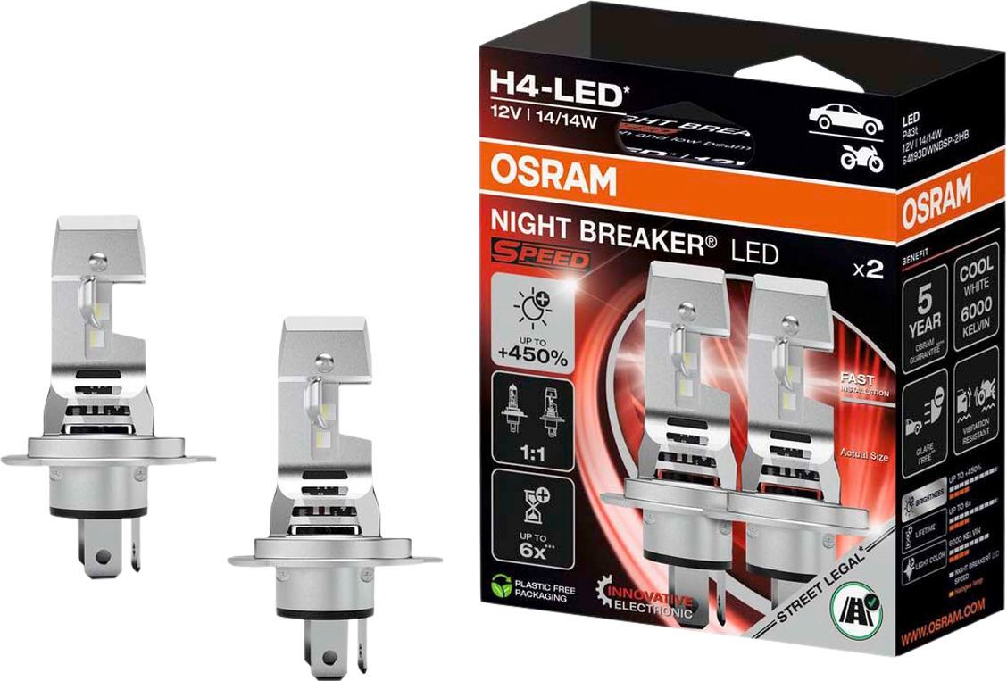 Osram Night Breaker LED Speed H4 450 LED Autoscheinwerferlampe mit 240 m Leuchtweite – Einbauleuchten & Leuchtmittel