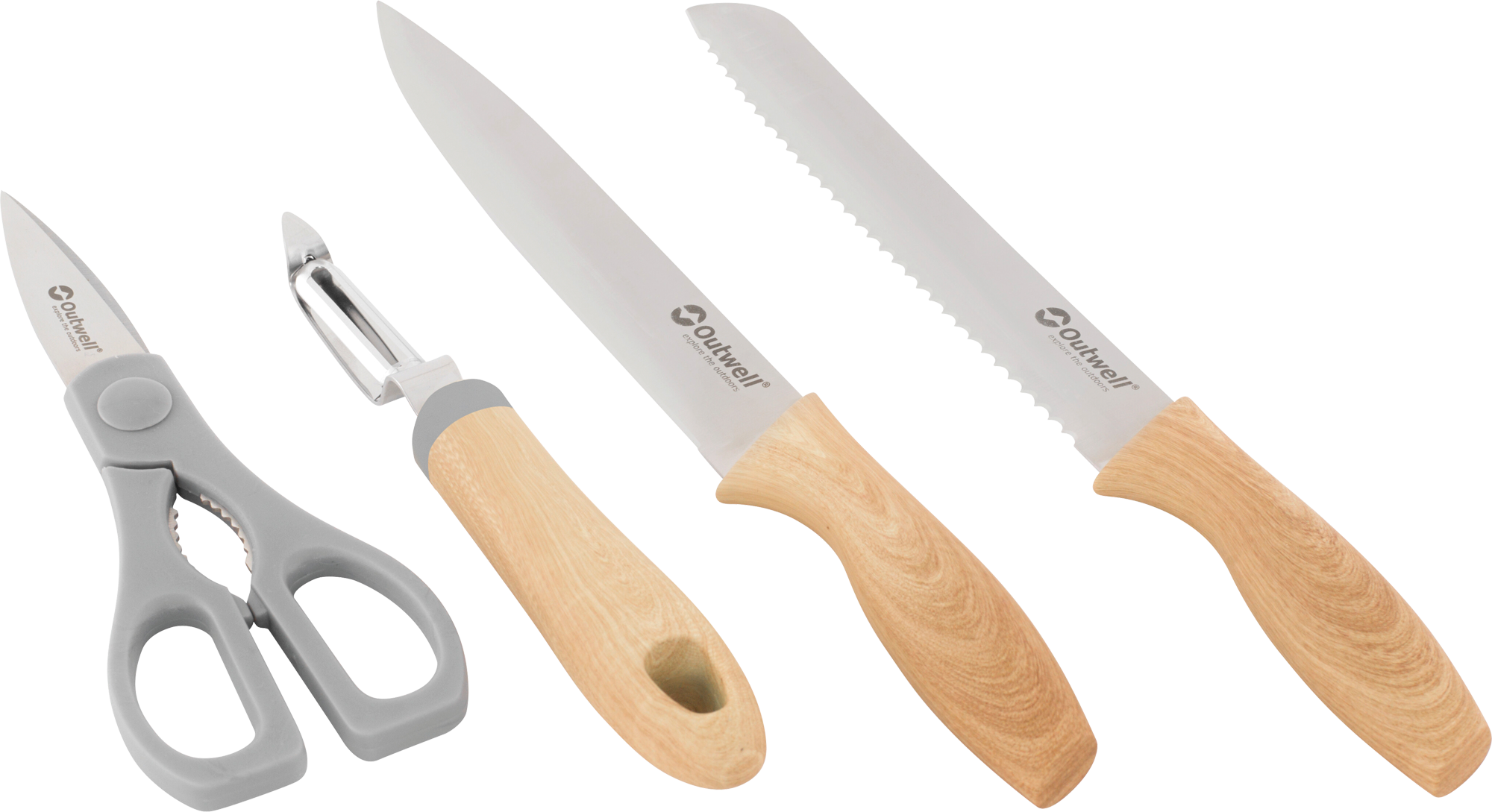 Outwell Chena Messerset 4 teilig mit Universalmesser / Brotmesser / Schere / Schäler – Kochbesteck
