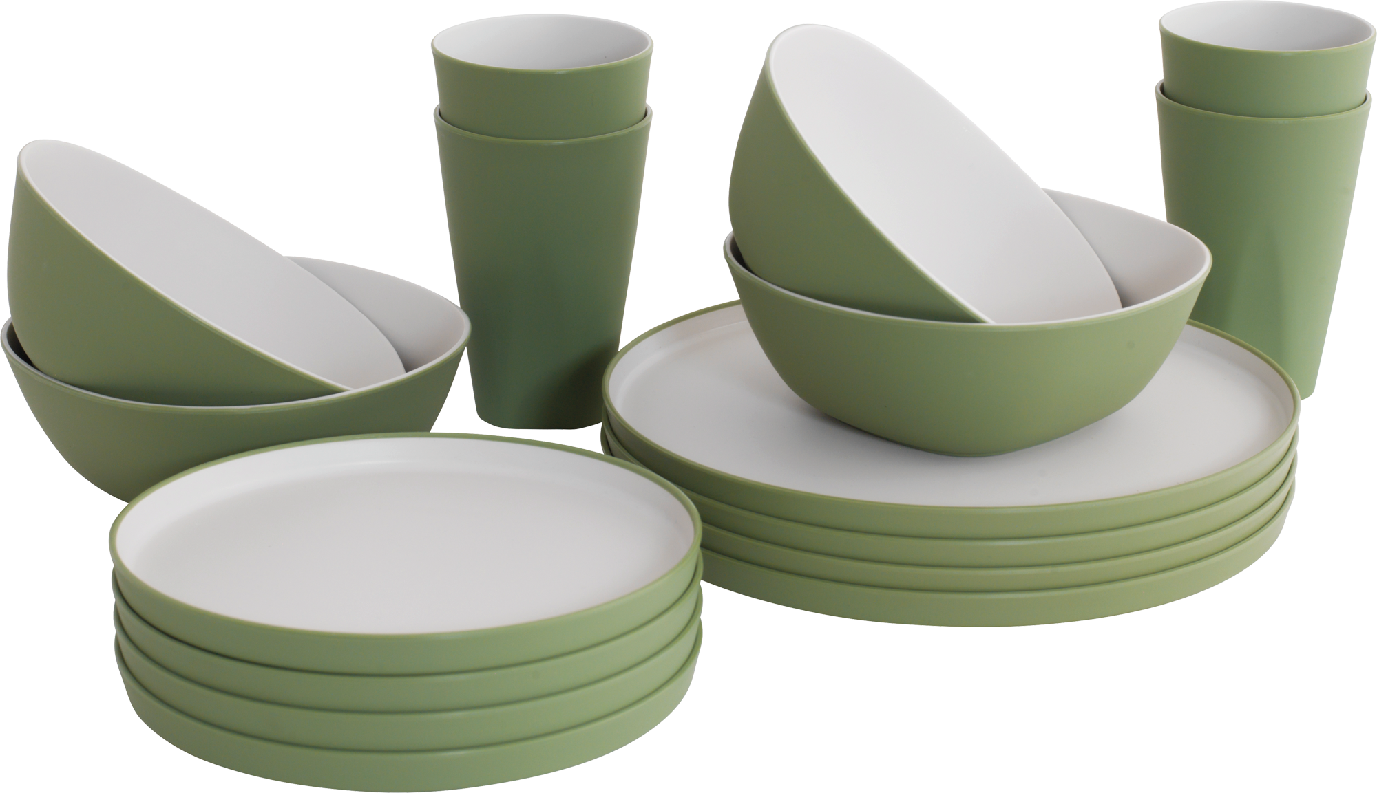 Outwell Gala Dinner Geschirr-Set 16-tlg. shadow green für 4 Personen – Kunststoff und Melamin Geschirr-Sets