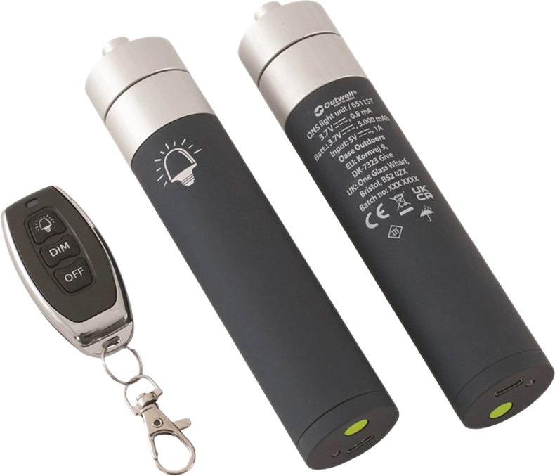 Outwell Nightlight System: 2 Akkus mit LED-Leuchten inkl. Fernbedienung für Outwell Zelte und Vorzelte 2023 bis 2025 Das patentierte Outwell Nightlight System (ONS) bringt die Gemütlichkeit einer Lichterkette in moderne Vorzelte und Zelte. Entwickelt für das komfortable Leben im Freien, sorgt das System mit weichem Licht für Orientierung nach Einbruch der Dunkelheit, ohne dabei zu stören. Die LED-Leuchten sind mit dem einzigartigen HookTrack-System kompatibel und bieten sowohl Beleuchtung als auch Aufhängung für mehr Vielseitigkeit. Dank der wiederaufladbaren Batterien und der Funkfernbedienung lässt sich das Licht bequem steuern, und die drei einstellbaren Helligkeitsstufen sorgen für die richtige Beleuchtung in jeder Situation. Details: * Patentiertes Outwell Nightlight System (ONS) für sanftes, einladendes Licht * USB-C-Ladeanschluss * Kompatibel nur für ONS vorbereiteten Zelten und Vorzelten von 2023 bis 2025 * Funkfernbedienung für einfache Steuerung * HookTrack-System: Aufhängung und Beleuchtung in einem * Wiederaufladbare Batterie * USB-Ladekabel im Lieferumfang enthalten * Nicht kompatibel mit Zelte aus dem Jahr 2026 Technische Daten: * Material: Kunststoff Polycarbonat (PC), Aluminium * Lichtquelle: 3 Watt, 3000 Kelvin * Akkukapazität: 5000 mAh, 3.7V (Leuchte); CR2016 3V (Fernbedienung) * Leuchtzeit: 6 Stunden * Maße (1 Leuchte): 3,2 x 15 cm (Durchmesser x Höhe) * Packmaß: 3,2 x 6,4 x 15 cm Lieferumfang: * 2 x Akku für Leuchten * 1 x Funkfernbedienung * 2 x USB-C-Ladekabel * 1 x Inbusschlüssel (1,5 mm) Gewicht: 0,52 kg