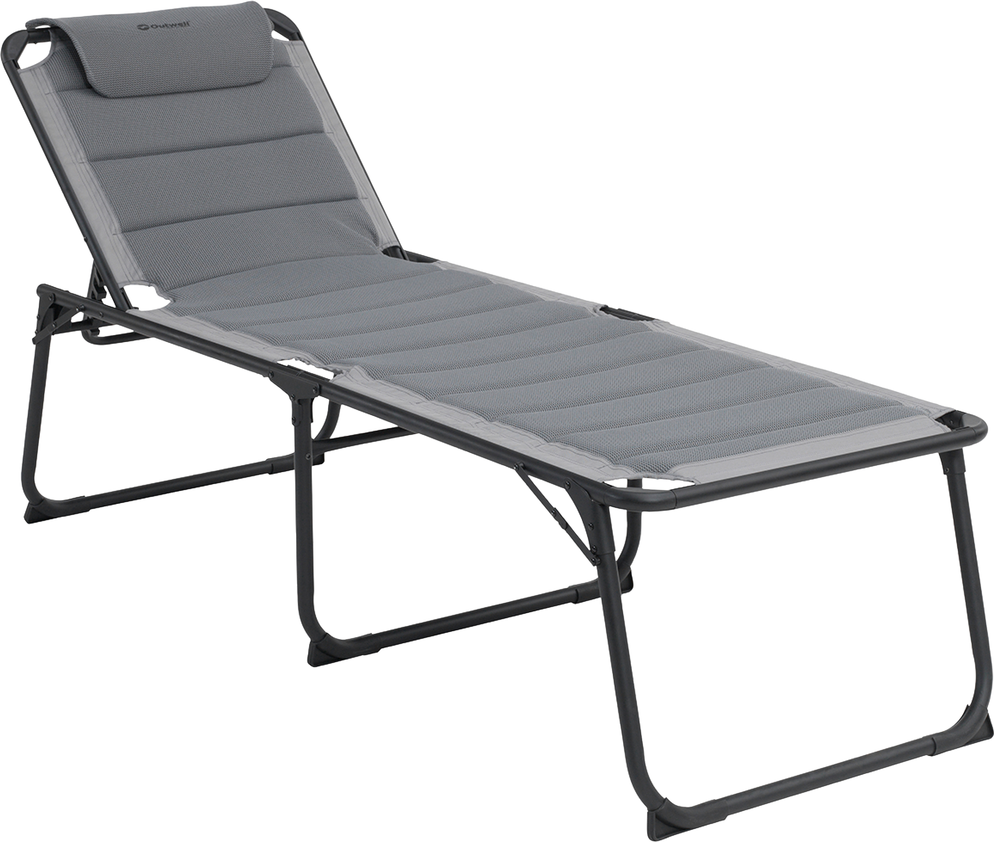 Outwell Samoa – komfortables Klappbett für entspannte Momente Mit dem Outwell Samoa Klappbett entspannst du stilvoll und bequem – ob beim Sonnenbaden oder am Lagerfeuer. Die schnelltrocknende Polsterung aus 3D-Polyesternetz und Textiline bleibt dank wasserabweisendem Material auch bei Regen trocken. Die verstellbare, abnehmbare Kopfstütze lässt sich in fünf Positionen einstellen und bietet dir individuellen Komfort. Die praktische Verriegelungsfunktion sorgt für Stabilität, während das Bett leicht, klappbar und sofort einsatzbereit ist. Details * Schnelltrocknende Polsterung mit wasserabweisendem Unterstoff * Verstellbare und abnehmbare Kopfstütze mit 5 Positionen * Leicht bedienbare Verriegelungsfunktion verhindert unbeabsichtigtes Zusammenklappen * Sekundenschnell auf- und zusammenklappbar * Keine Montage erforderlich, leicht zu tragen Technische Daten * Material Liegefläche: 3D-Polyesternetz (Polyester) mit schnell trocknendem Schaum und Textiline * Rahmen: pulverbeschichtetes Aluminium * Textilfaserzusammensetzung: 100 % Polyester * Gewicht: 7 kg * Größe (BxTxH): 70 x 200/214 x 49 cm * Packmaß (BxTxH): 70 x 81 x 22 cm * Liegehöhe: 49 cm * Maximale Belastung: 120 kg Lieferumfang * 1x Outwell Samoa Klappbett mit Kopfstütze Integriertes Polster: Ja, Metallgelenk: Ja, Rückenlehne: 5-fach verstellbar, Farbe: grau